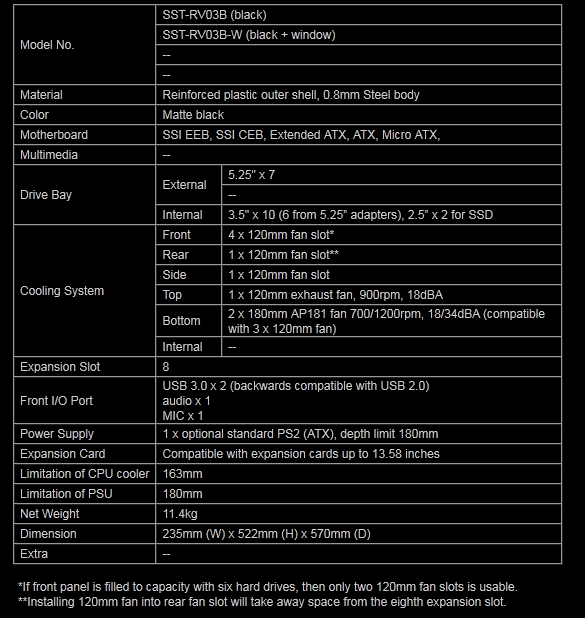 Qui di seguito riportiamo una tabella con le caratteristiche tecniche del nuovo SilverStone Raven RV03.