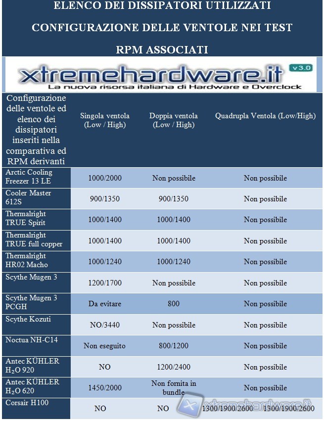 Abbiamo scelto di utilizzare come CPU un Core i7 920 revisione D0 in quanto permette di stressare in modo adeguato il dissipatore, grazie al suo TDP di circa 130W a default. Riportiamo i dati effettivi di rotazione delle ventole, ricordando inoltre che sono sensibili ad una variazione del 10% quindi sono puramente indicativi. Differenze minime tra i regimi di rotazione sulla stessa ventola, non cambiano generalmente il risultato complessivo.