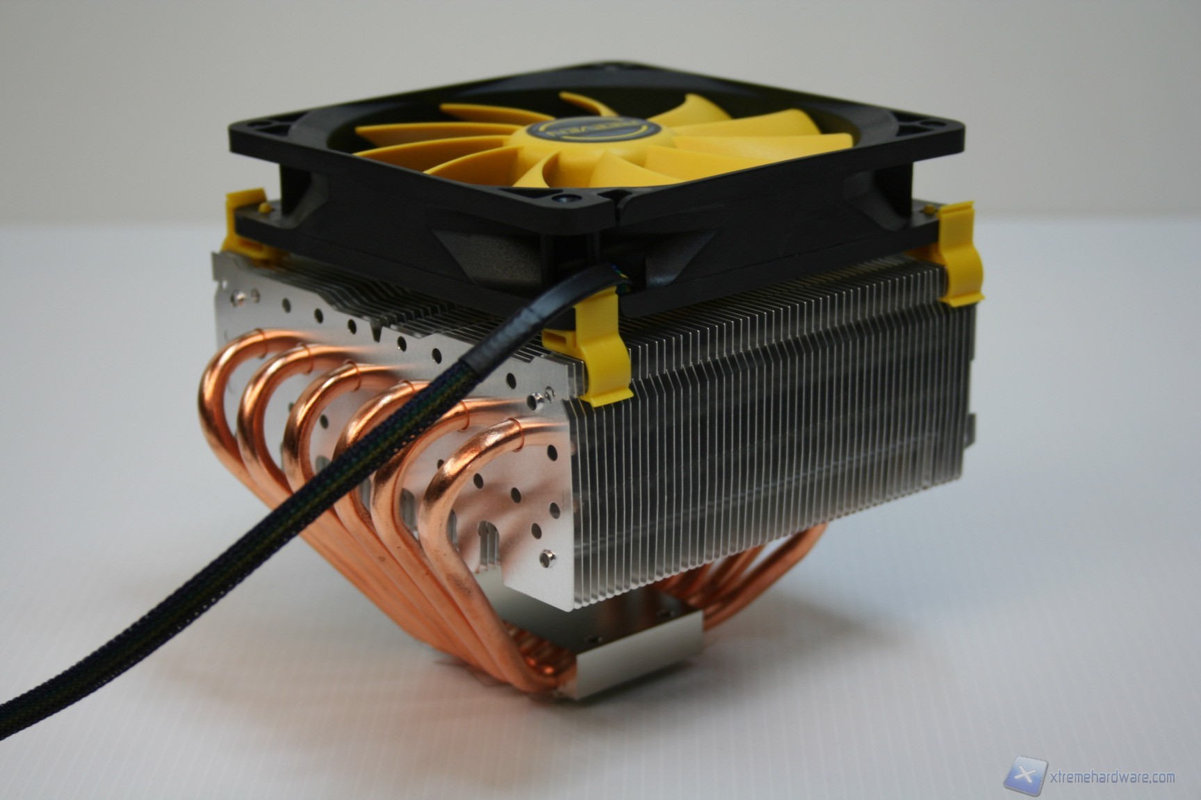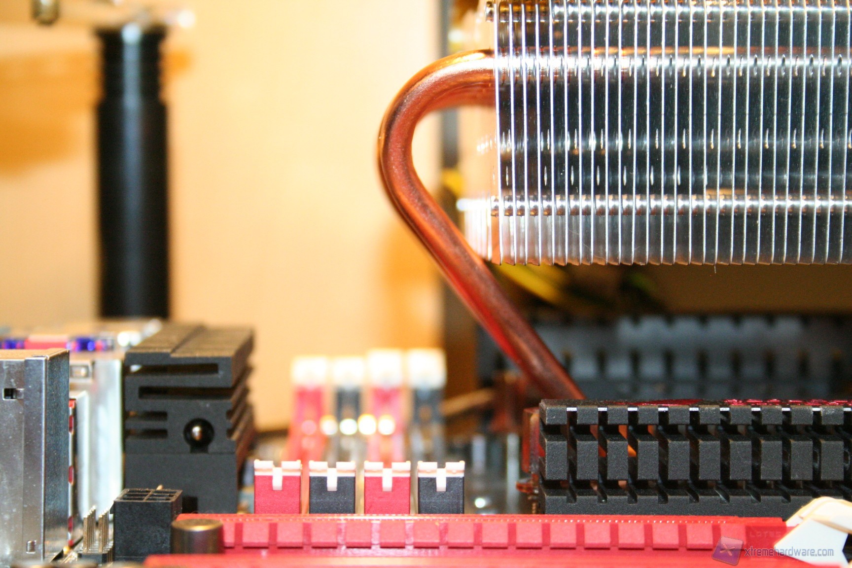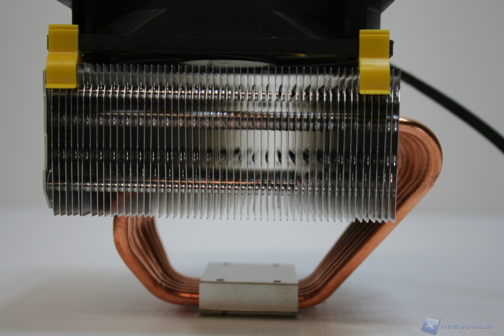 La spaziatura tra le alette è ampia, ben 2.5mm, e questo fattore evita quindi l’eventuale necessità di utilizzare ventole dall’elevata pressione statica, inoltre lo spessore è ridotto (circa 0.35mm).