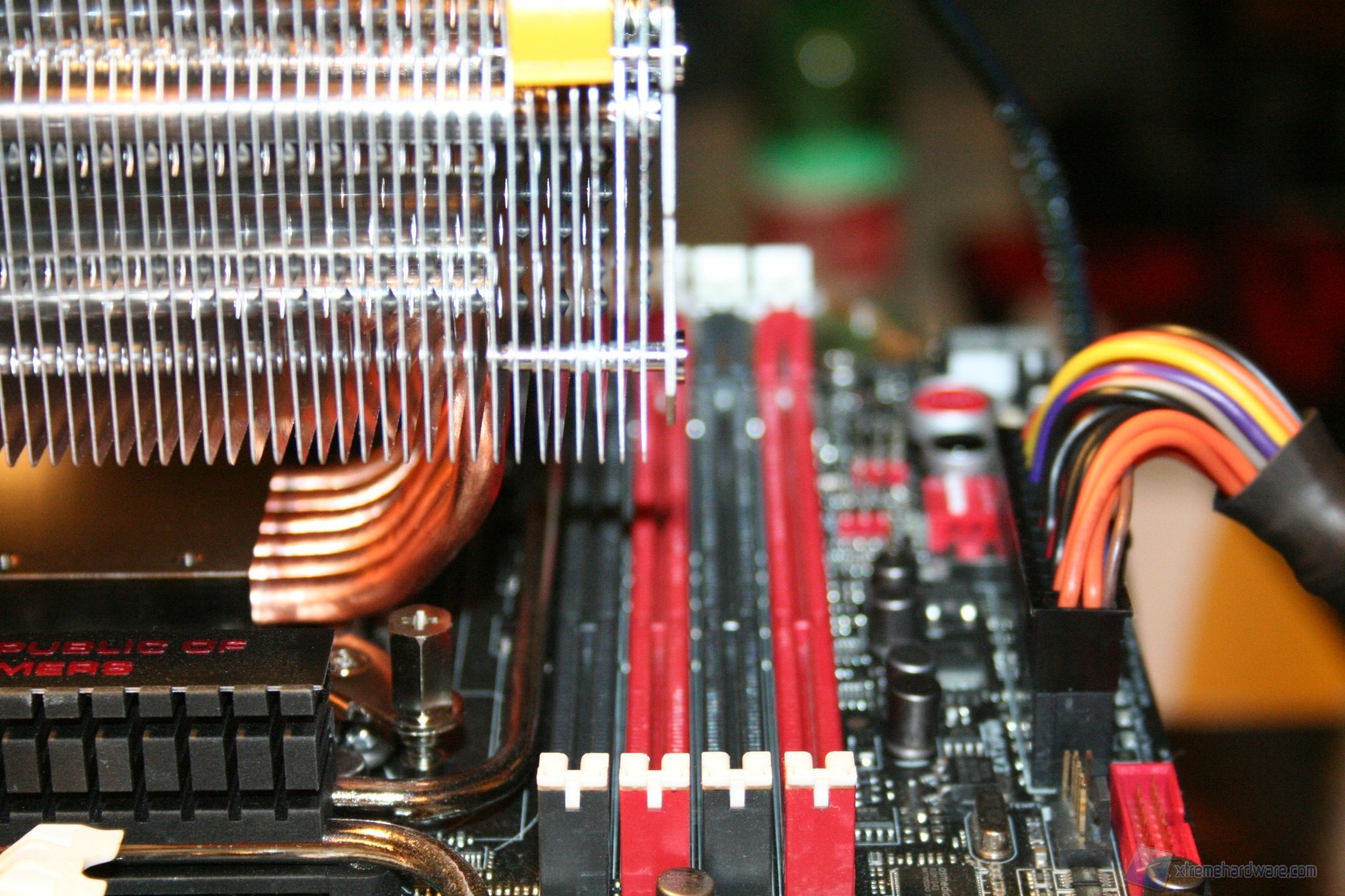 Il dissipatore presenta un’altezza contenuta, quindi siamo certi che non ci siano problemi di compatibilità con cabinet standard; non segnaliamo, a prima vista, problemi potenziali con sistemi di dissipazione elaborati, anche se in presenza di schede madri come l’EVGA Classified III vi invitiamo a prendere le necessarie accortezze. Il dissipatore, nel socket X79, occupa i primi due slot di RAM nel caso di moduli con sistemi di dissipazione ad elevato profilo.