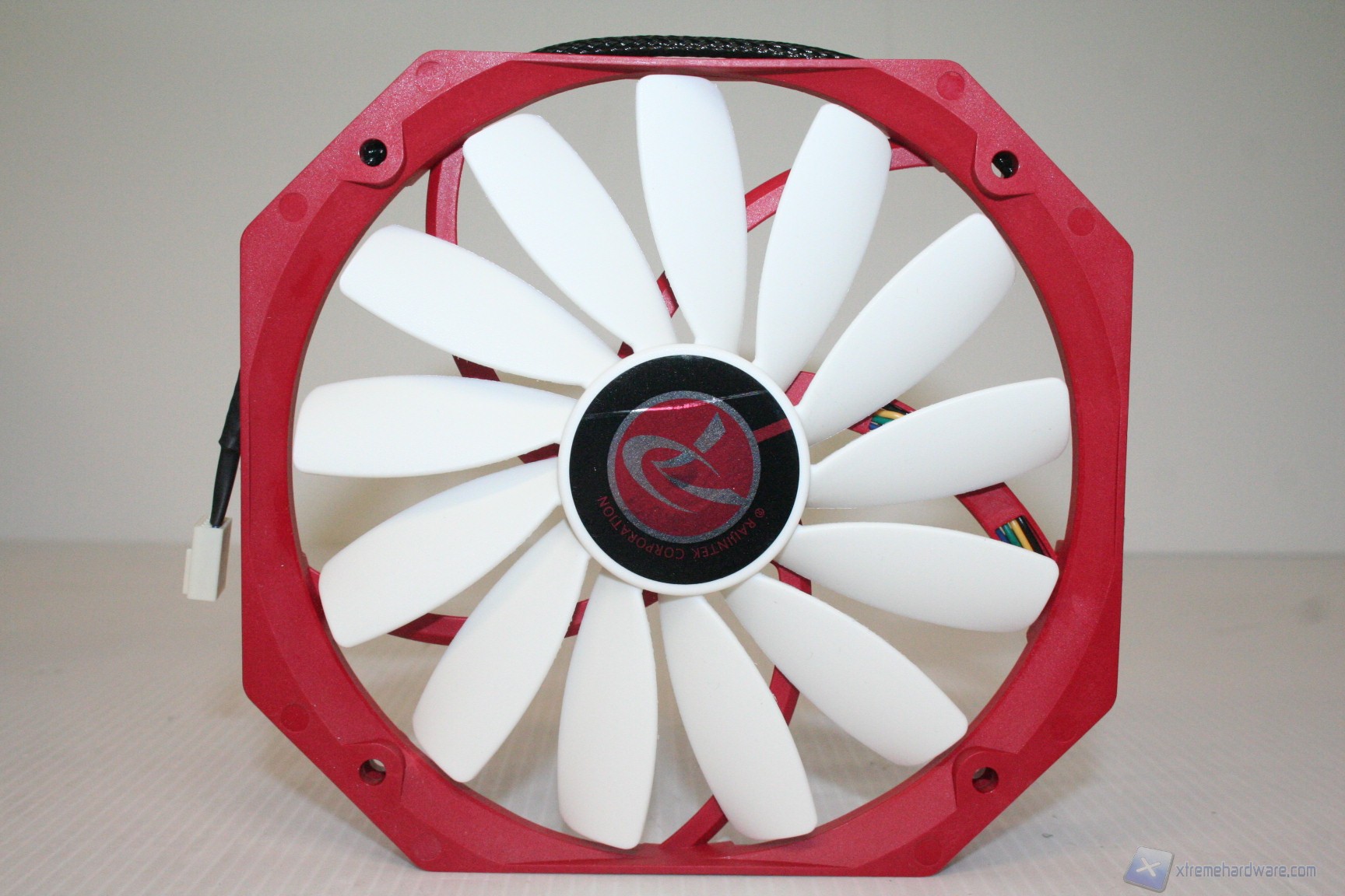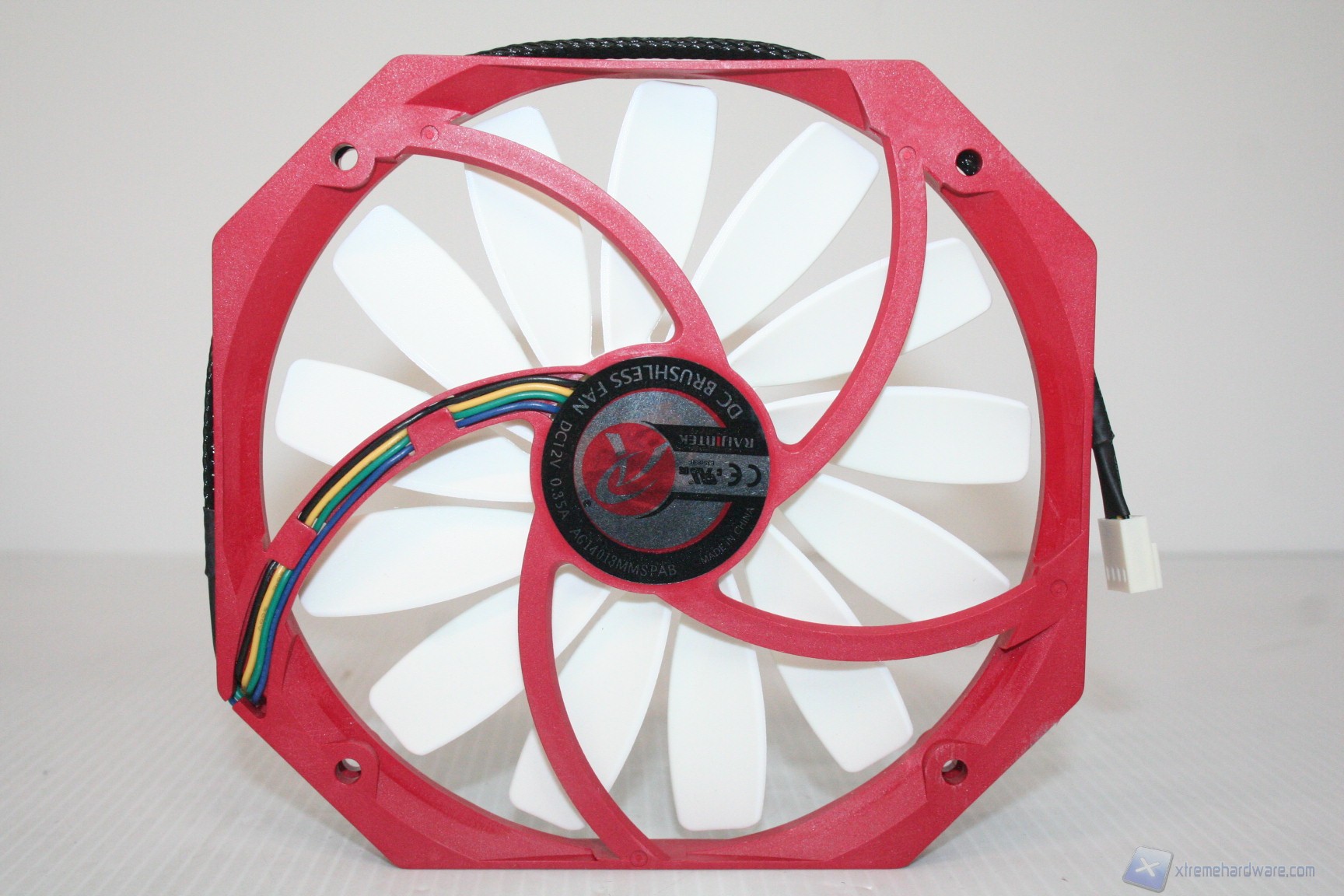 E’ presente il modello AG14013MMSPAB. Il diametro è elevato, 140mm, mentre lo spessore è ridotto, pari a 13mm. Ciò permetterà un’elevata compatibilità e una rumorosità ridotta, ma CFM conseguentemente minori a parità di RPM, se rapportati a modelli aventi uno spessore di 25mm (l’attuale standard di progettazione). La silenziosità, a 1650 RPM è soddisfacente, non sarà una ventola eccessivamente molesta, anche se ovviamente non può essere classificata come silenziosa. Presenta un leggero ticking a bassi RPM, però nulla di sostanziale. Le performance sono buone e l’accoppiata con questo dissipatore è pressoché perfetta. Lo sleeving è eccellente e la ventola è PWM.