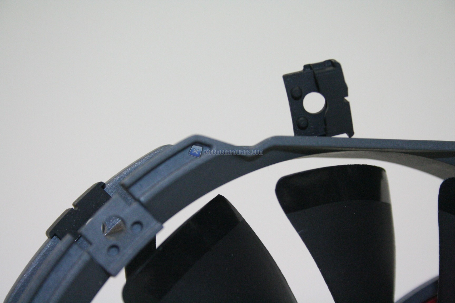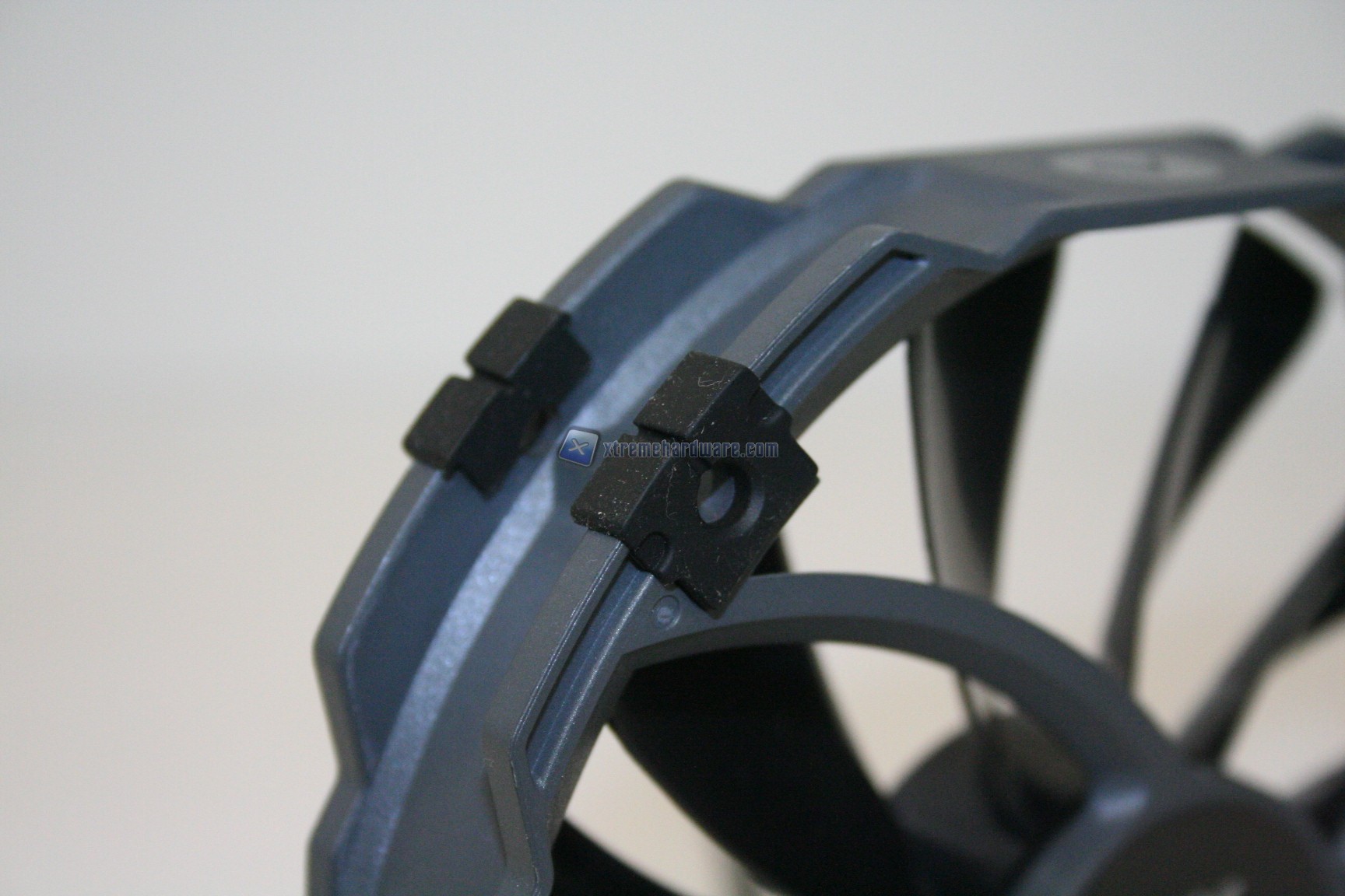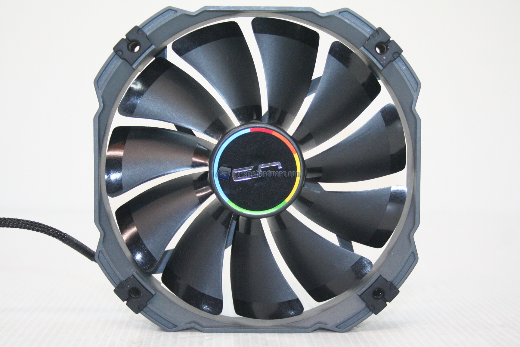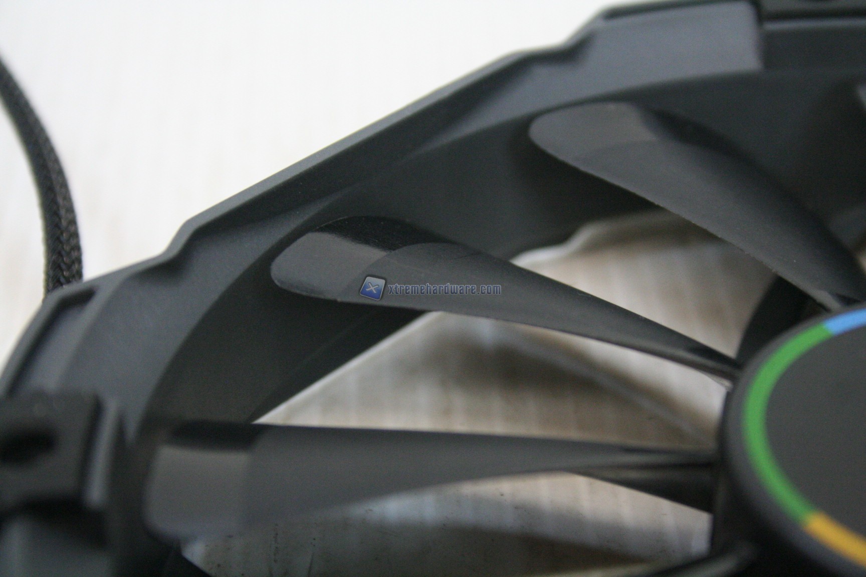 Senza perderci in inutili feeling personali, vi invitiamo a visionare il valore di dBA dal grafico dei risultati del test di carico termico, e trarre le vostre conclusioni. Sappiate che la velocità di rotazione delle ventole, essendo queste ultime PWM, è perfettamente configurabile qualora si fosse in possesso di un fan controller. Al massimo del regime di rotazione le due ventole ovviamente si isoleranno dal resto del sistema, anche se il rumore generato è perfettamente tollerabile. Non sono presenti picchi di frequenza molesti ed è anche importante il fatto che a bassi RPM è quasi del tutto assente il fenomeno del ticking, ovvero di un ticchettio di fondo derivante dalla rotazione del motore. Sono ventole decisamente valide, dalle ottime prestazioni e quindi ben bilanciate tra CFM e dBA. Ne vengono fornite due nella confezione ed hanno un sistema di blocco con una classica staffa di ancoraggio, che si ancora a quattro isolatori vibrazionali proprietari. Facciamo presente che sono forniti altri 8 modelli, ripartiti per colore (quattro neri preinstallati, quattro bianchi e quattro rossi), il che quindi ne migliora l’estetica. Le pale presentano un profilo classico anche se sono presenti alcuni dettagli interessanti, tra cui dei bordi interni ed esterni con un materiale diverso da quello del frame, che in linea teorica dovrebbe portare ad una ottimizzazione del rapporto rumore / vortici. Le pale hanno un profilo leggermente ricurvo anche nella porzione terminale ed il motore presenta un diametro di 41.90mm; il bearing è HPLN™ (High Precision Low Noise), proprietario, ed assicura un migliore MTBF oltre ad un rumore inferiore. Lo sleeving è eccellente ed è applicato un ottimo termorestingente sia all’inizio che alla fine del cavo. Da notare che i pad antivibrazione si possono rimuovere con una facilità estrema. Consigliamo di tenere il dissipatore attorno ai 1000RPM, al fine di bilanciare prestazioni e rumore.
