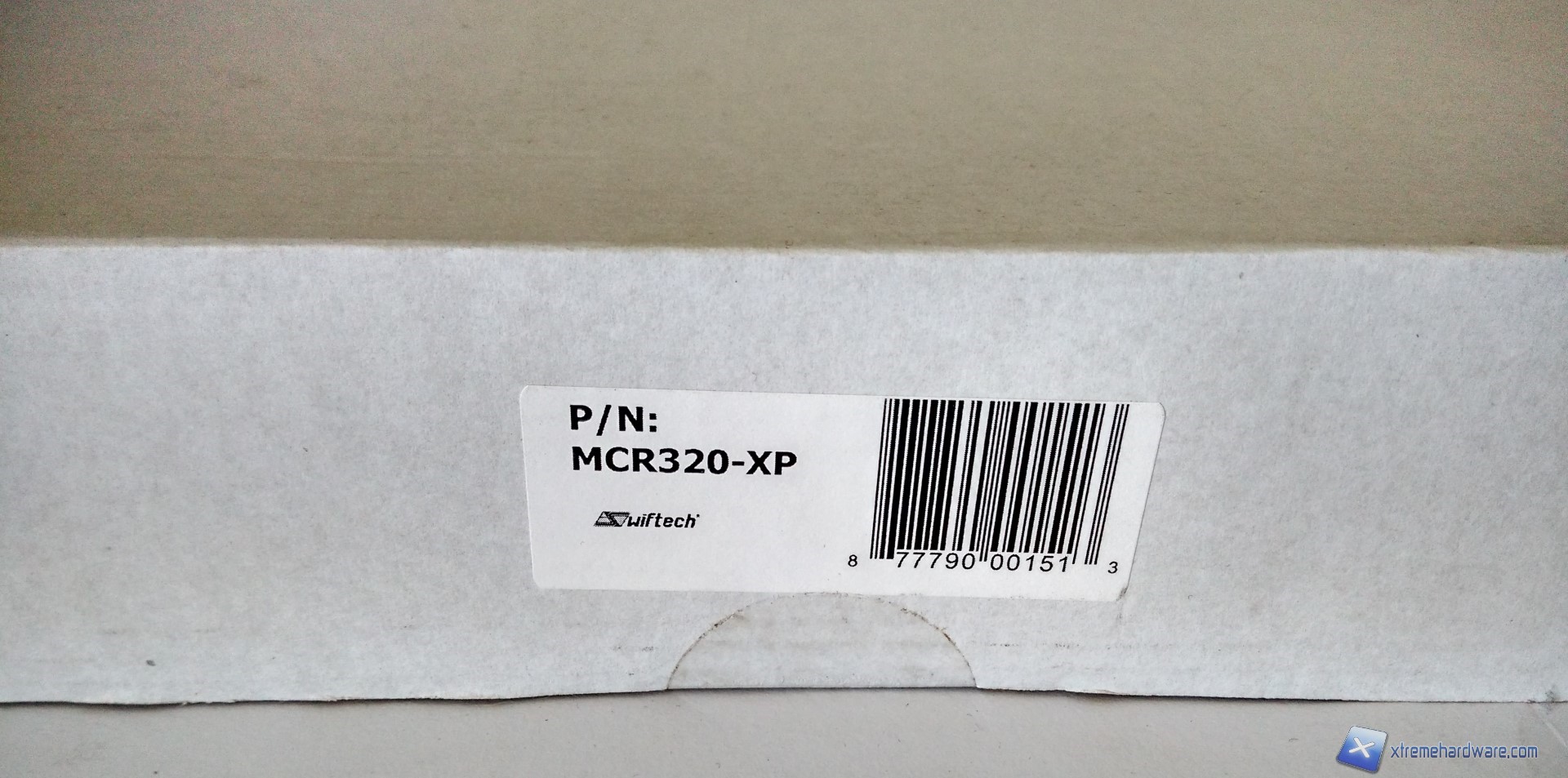 I radiatori Swiftech MCRx-20 ci vengono recapitati in anonime confezioni di cartone bianco senza alcun riferimento al suo contenuto tranne che per un piccolo adesivo sul quale è stampato un codice a barre e vi è riportato il part number che identifica il prodotto.