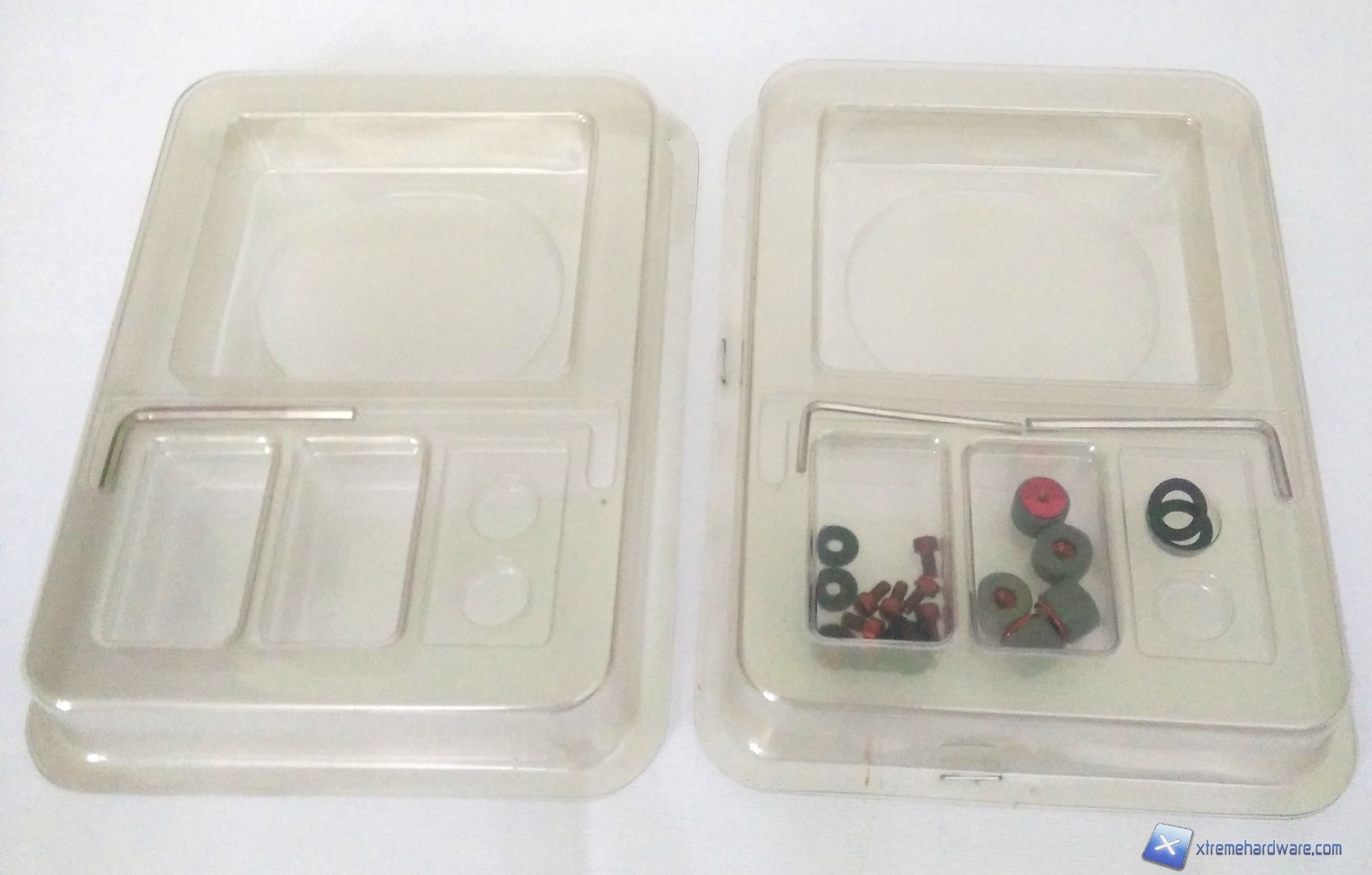 Apriamo la confezione e ci troviamo la vaschetta protetta in un panno di neoprene, inserita in una sagoma di plastica che ospita poi il bundle e troviamo ovviamente il libretto con le istruzioni per il montaggio.