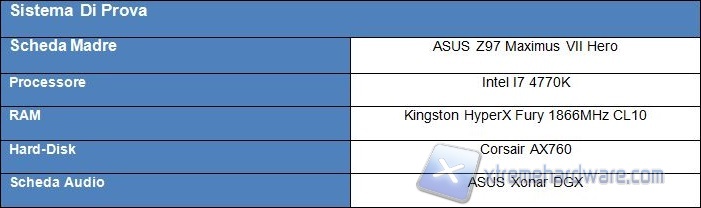 Abbiamo testato la scheda oggetto della review odierna con il seguente sistema di prova per quanto riguarda benchmark e giochi:
