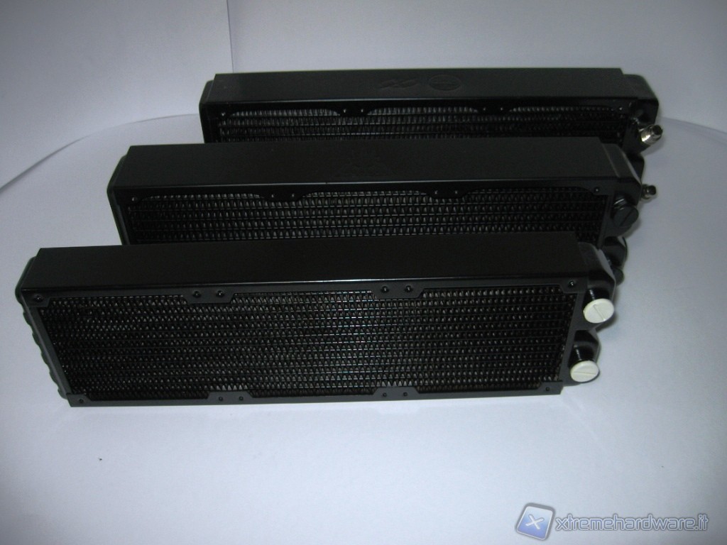 I test sono stati condotti con una temperatura ambiente di circa 18 °C, rilevati tramite termometro digitale. Al fine di rendere il risultato indipendente dalla temperatura ambiente, è stata riportata nei grafici la variazione della stessa. Per mettere sotto stress il radiatore è stata sviluppata una potenza complessiva, determinata dalla CPU e dalla GPU sotto overclock, di circa 550 Watt. Per generare tale assorbimento di corrente, e quindi conseguente generazione di calore, è stata usata una CPU i7 975EE raffreddata tramite waterblock della EK, modello SUPREME HF Cu, che, sotto overclock alla frequenza di 4014 MHz, genera un consumo di circa 220 Watt. I 330 Watt assorbiti dalla GTX480, liquidata tramite waterblock full cover della Koolance VID-NX480, sono stati generati overclockando la stessa alla frequenza di 801 MHz.