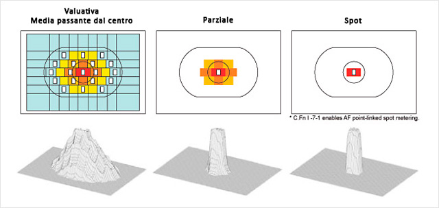 La misurazione esposimetrica si può effetuare in quattro modalità: