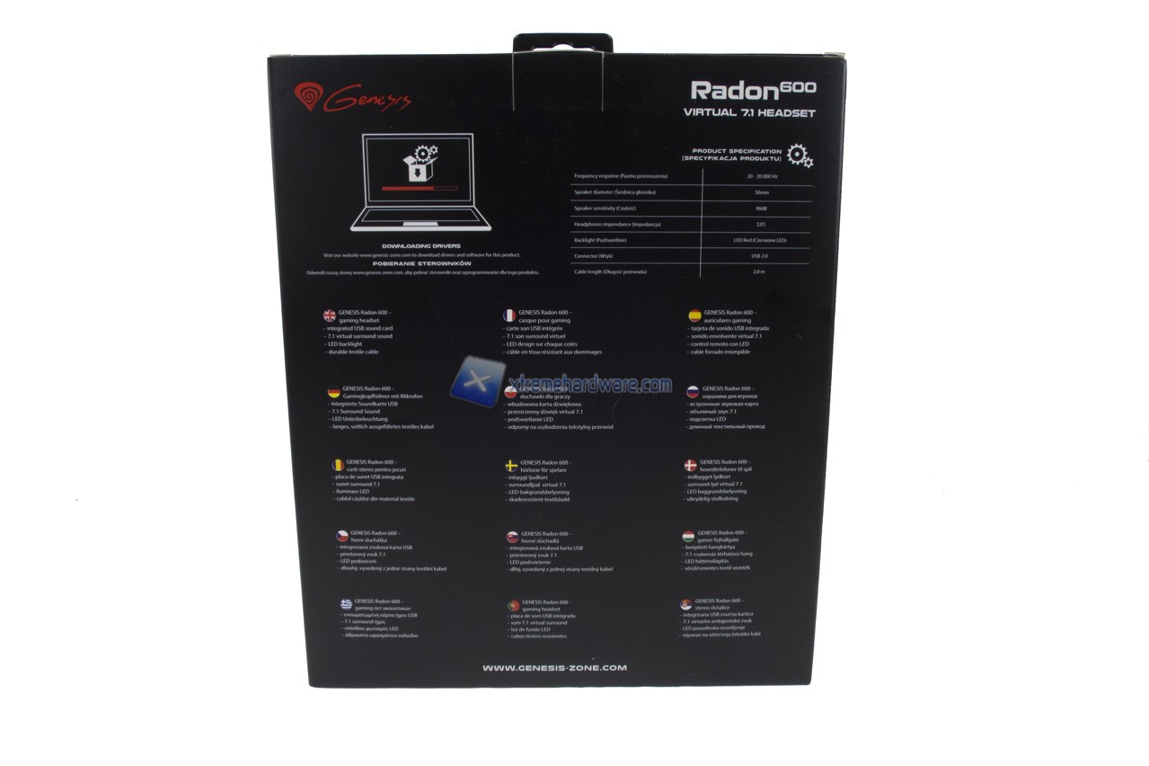 Le cuffie Genesis Radon 600 sono ospitate in una confezione di cartone di medie dimensioni. Il design e grafica è la consueta dei prodotti Genesis. Troviamo diverse immagini iillustrative, caratteristiche e specifiche tecniche.