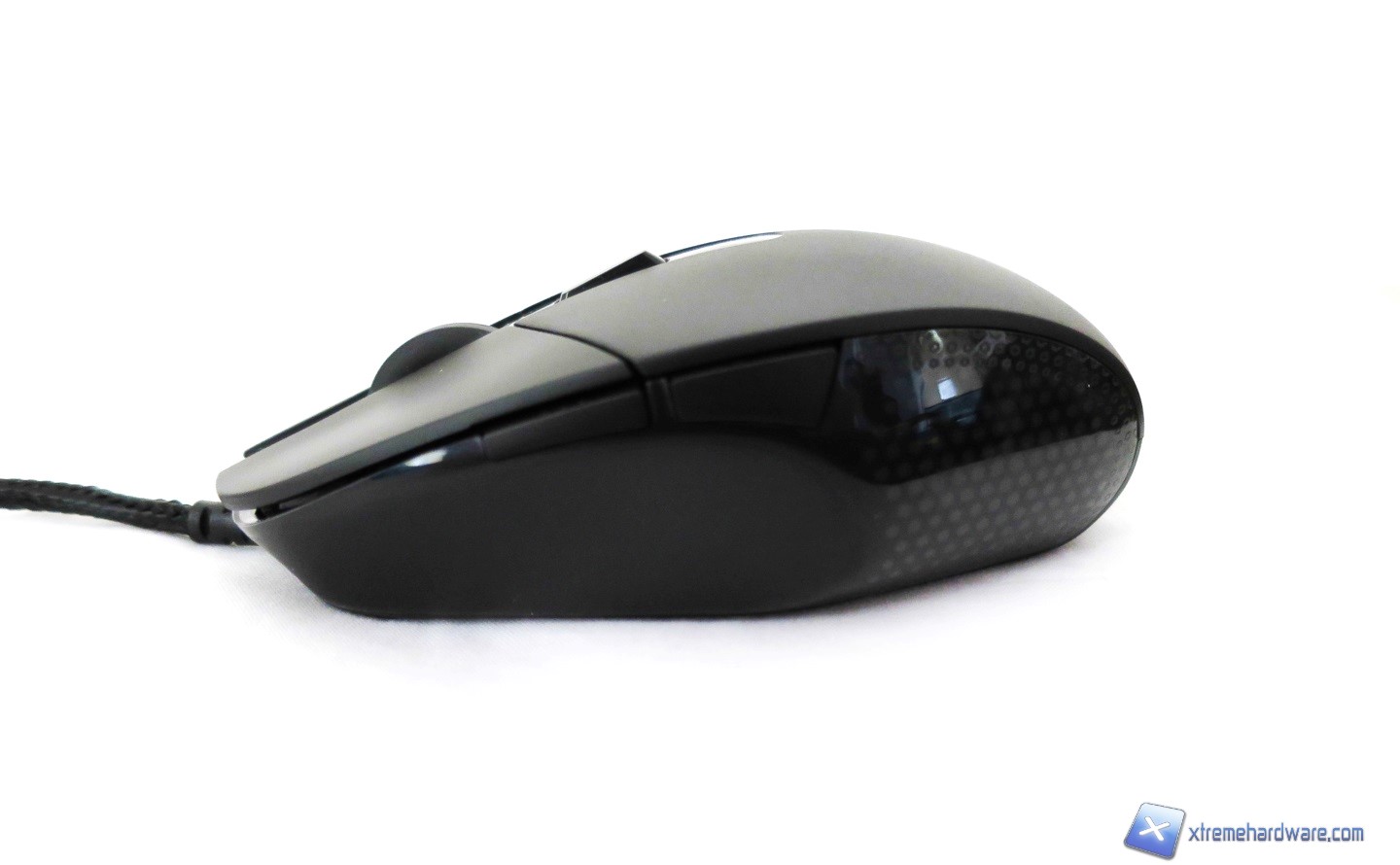 Spostiamoci verso i lati ed iniziamo con quello di sinistra. Qui possiamo scorgere meglio come Logitech al solito ha fatto un ottimo lavoro di qualità costruttiva e di design. Ambo i lati del mouse sono infatti dotati di una duplice superficie. Nella zona posteriore laterale troviamo una superficie liscia in plastica trasparente che “contiene” al suo interno una texture a nido d’ape dalla quale verrà proiettato il fascio di luce generato dal LED posto all’interno della scocca, creando un effetto di luce molto particolare. Nella zona anteriore laterale invece troviamo la superficie opaca dove, data la forma del mouse, potremo poggiare il pollice in attesa eventualmente di premere i due classici tasti posti al centro di queste due superficie/zone. I due tasti laterali questa volta non hanno una dimensione generosa come in altri mouse della serie Gaming di Logitech. Troviamo infatti due tasti ricavati dalla scocca e che hanno forme diverse mantenendo però una dimensione minima. Vedremo nel capitolo delle prove ed impressioni se tale scelta è stata funzionale o meno.