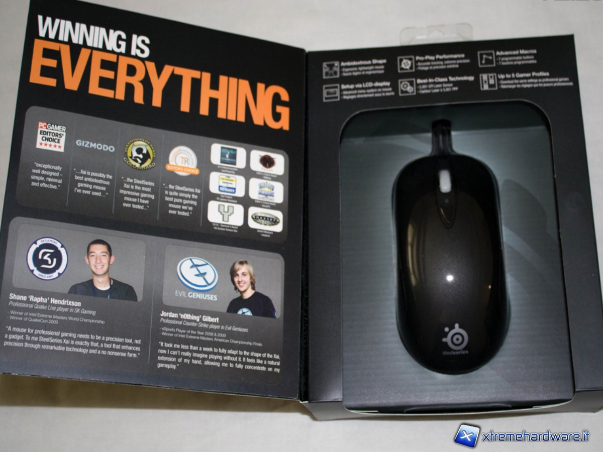 All’interno della confezione troviamo, oltre al mouse, un adesivo SteelSeries, il manuale di istruzioni in dieci lingue, tra cui l’italiano e un coupon illustrativo riportante svariati prodotti dell’azienda danese.
