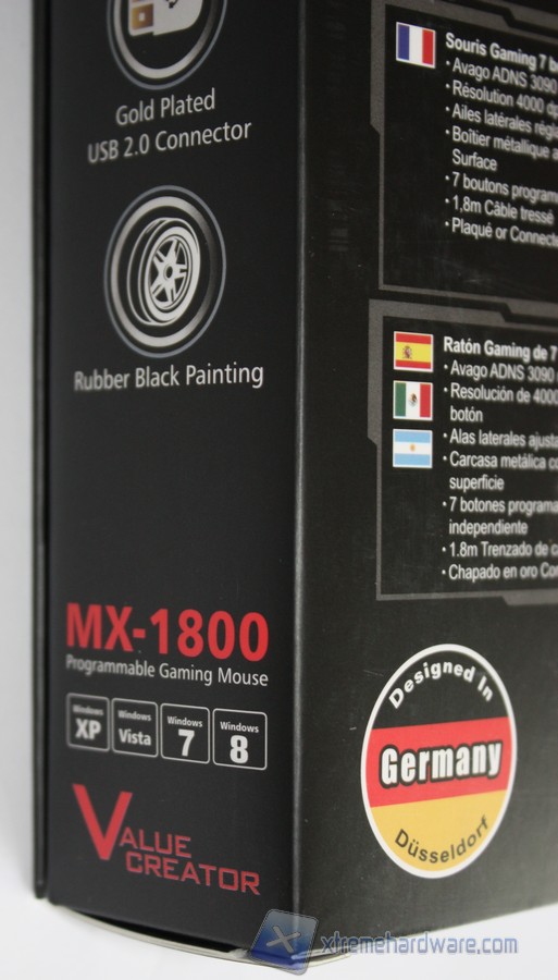 Ai lati della confezione vengono riportate alcune specifiche e caratteristiche tecniche del prodotto.