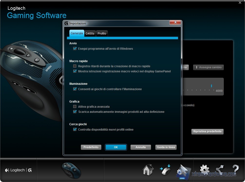 Inoltre nelle impostazioni generali del programma potremo verificare il firmware del nostro mouse o ancora gestire l’avvio del programma con Windows ed altre funzioni, alcune delle quali, in comune con altri prodotti della serie Gaming di Logitech che si interfacciano con lo stesso programma.