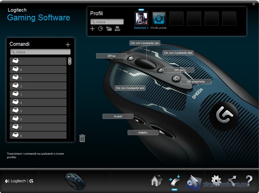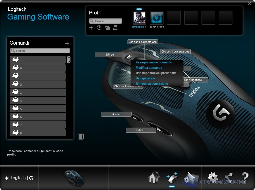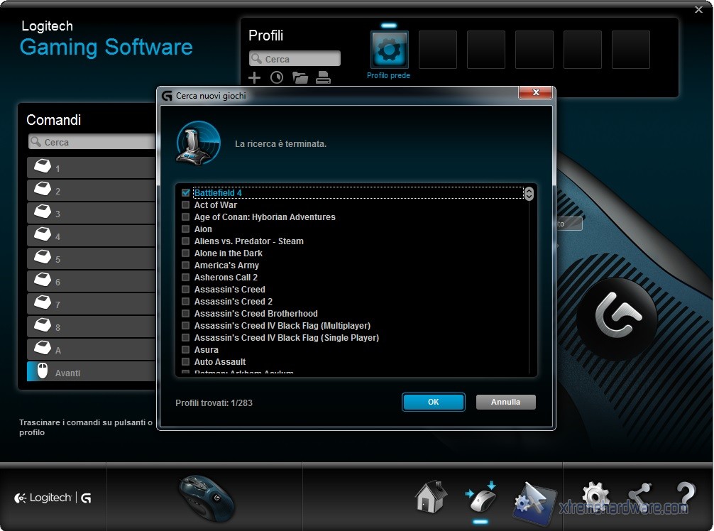 Colleghiamolo per la prima volta e appena vorremo modificare i comandi o impostazioni il software ci caricherà in automatico dei profili, in questo caso ben 283, per i giochi più diffusi e conosciuti. In questo caso noi abbiamo caricato il profilo di Battlefield 4 che setta in modo automatico le funzioni principali del gioco.