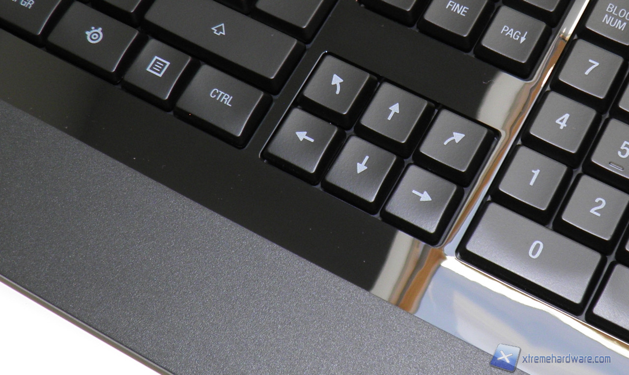 Un altro aspetto insolito della Steelseries Apex è il cluster direzionale che, oltre alle solite quattro frecce, presenta anche due frecce oblique aggiuntive.