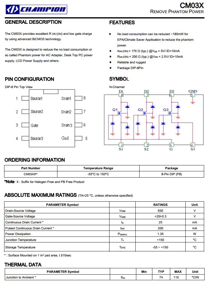 Dietro ad essi troviamo i diodi della sezione PFC, ma purtroppo data l'impossibilità di dissaldare l'unità, non è possibile descriverli. Nell'ultima fotografia troviamo due controller: a sinistra il Power MOSFET CM03X (che fornisce un ottimo R DS(ON) ), ed a sinistra un Single PFC Controller W/Inrush Current Control &Separated PFCOVP - denominato più brevemente Champion CM6500, ed appartenente alla serie TNX