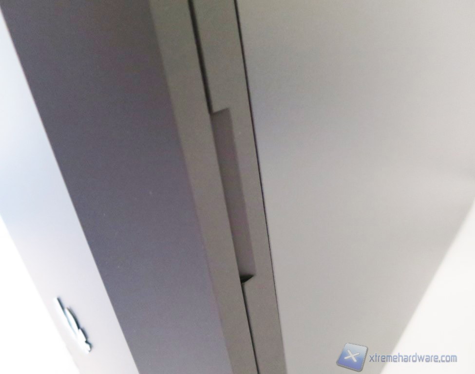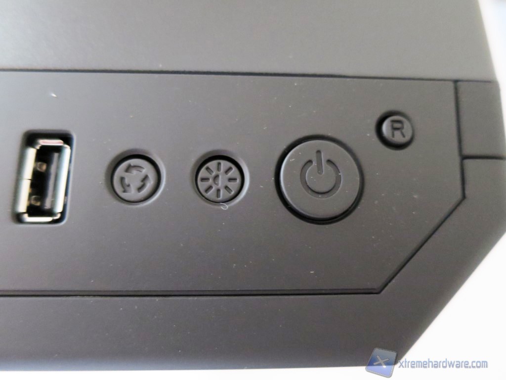 Il frontale del BitFenix Shadow è rivestito di una superfice Soft Touch molto bella al tatto ed alla vista. Spostandoci leggermente verso il basso possiamo notare il classico logo BitFenix in risalto ed ai lati alcune feritoie che sembrano le branchie di uno squalo, questo per rendere più aggressivo ma non meno elegante il BitFenix Shadow. La loro funzione principale è permettere il passaggio di aria fresca alle retrostanti ventole da 120mm. Il colore del frontale è completamente nero opaco, come per molti altri case dell’azienda taiwanese. Notiamo inoltre come il pannello frontale sia solo una semplice protezione per le unità da 5,25 pollici e per la griglia delle ventole: infatti, ci basterà aprire lo sportello/pannello per accedere al vero frontale composto da una griglia a più inserti per l’installazione di unità da 5,25 pollici. Tali griglie sono dotate di comodi filtri antipolvere. La griglia inferiore, dotata di filtro antipolvere in spugna per due ventole da 120mmm, si rimuove con due semplici click, premendo semplicemente verso l’interno. Questo perché la griglia è dotata di due fermi agganciati a due supporti nella parte interna del case. La rimozione e la pulizia del filtro è pertanto molto semplice. Dietro tale griglia si cela la ventola da 120 millimetri preinstallata ed è possibile montare un’ulteriore ventola, sempre da 120 millimetri. Analizzando la parte top/frontale troviamo le connessioni USB ed i vari pulsanti. Nel dettaglio troviamo partendo da sinistra le spie attività del PC e del nostro Hard Disk, due porte USB 3.0, due porte USB 2.0, il tasto per cambiare colore ai LED, il tasto per spegnere l’illuminazione a LED, il classico tasto per l’accensione e per finire quello del Reset. La parte superiore del BitFenix Shadow, invece, non presente aperture o griglie per l’installazione di radiatori o ventole aggiuntive nella parte alta del case.