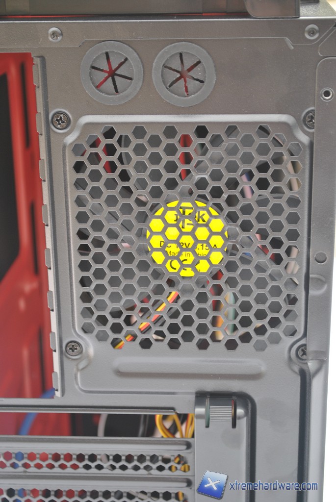 Si nota subito che anche all'interno il design è coerente con quanto mostrato esteriormente, i colori dominanti sono il rosso ed il nero. A livello costruttivo questo case si sviluppa sulla falsariga di tutta la concorrenza, essendo un prodotto di media gamma cerca di offrire soluzioni evolute con un occhio al budget, di conseguenza abbiamo una discreta organizzazione degli spazi che non contempla però un margine di manovra così ampio nei confronti dei componenti.