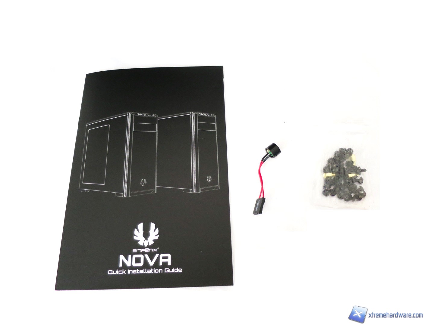 Estratto e rimosso tutto l’imballaggio, avremo il BitFenix Nova con il relativo bundle composto da:
