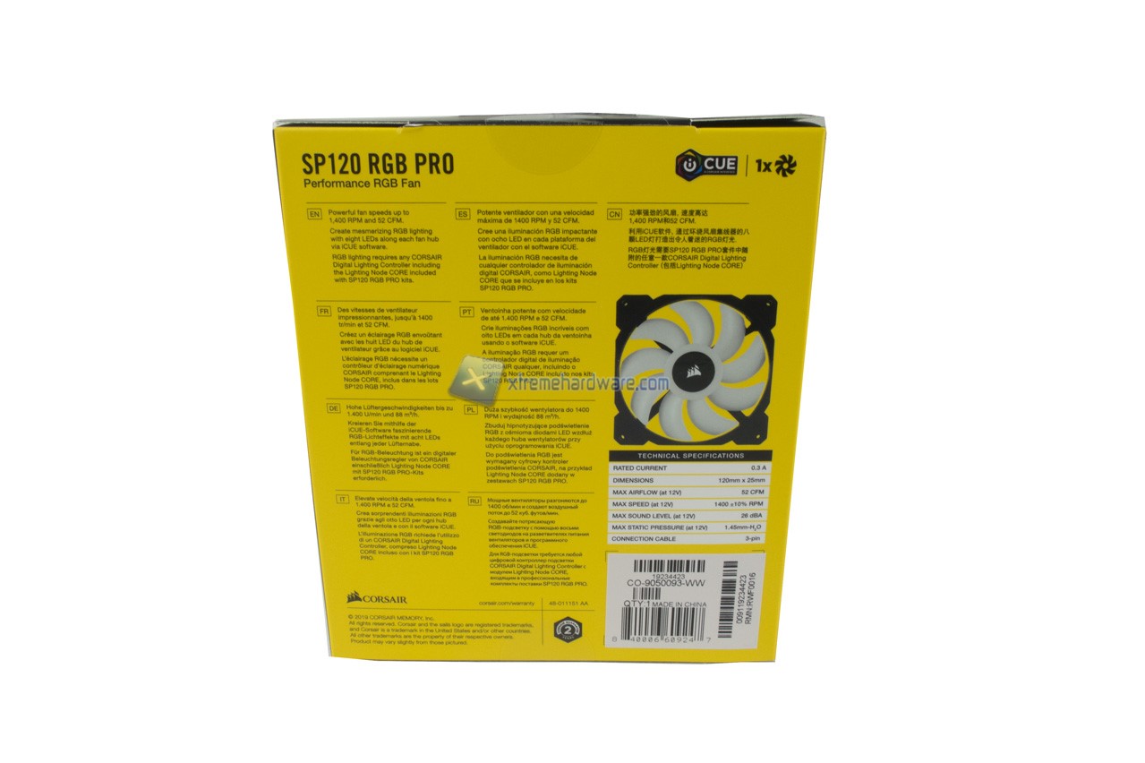Velocemente diamo dunque uno sguardo alla nuova SP120 RGB Pro. Confezione classica di cartone con numerose informazioni e in colorazione gialla.