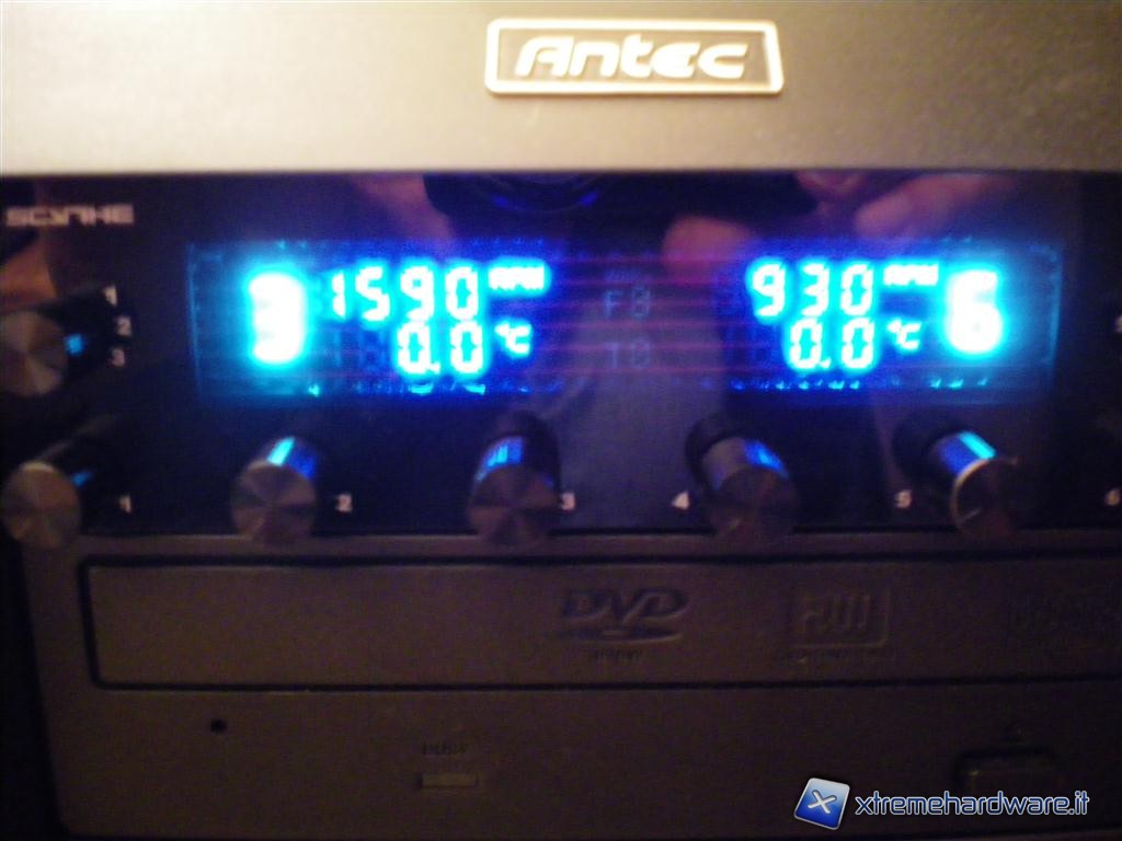 Il funzionamento è molto semplice ed intuitivo. Con i due selettori, scegliamo quale delle 6 ventole collegato vogliamo monitorare, nel nostro esempio con il primo selettore abbiamo scelto la ventola numero 3, mentre con l'altro selettore la ventola numero 6. La prima ventola l'abbiamo regolata al massimo della velocità, mente l'altra ad un regime attorno ai 950 RPM. Qualora la ventola non giri correttamente il rheobus emette un segnale acustico che ci avvisa che qualcosa non va. Abbiamo provveduto a provare diverse ventole in modo da poter capire se il nostro Scythe aveva dei problemi di compatibilità, ma ha superato brillantemente tutte le prove che abbiamo fatto, ed anche con tutte le ventole collegate ed impostate al massimo, non ha dimostrato segni di cedimento.