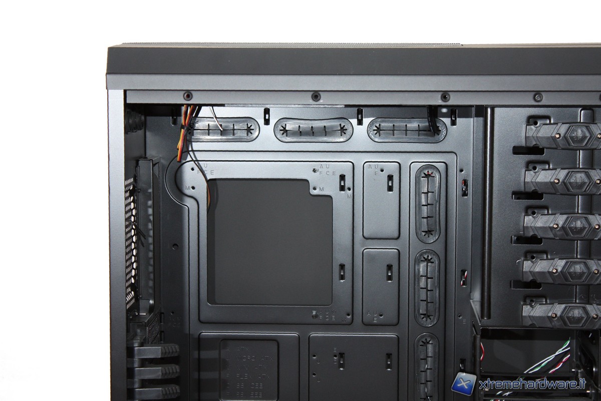 La zona dedicata al posizionamento della scheda madre è dotata di un foro che ci permette di sostituire anche i dissipatori dotati di back-plate senza dover per forza smontare anche la motherboard.