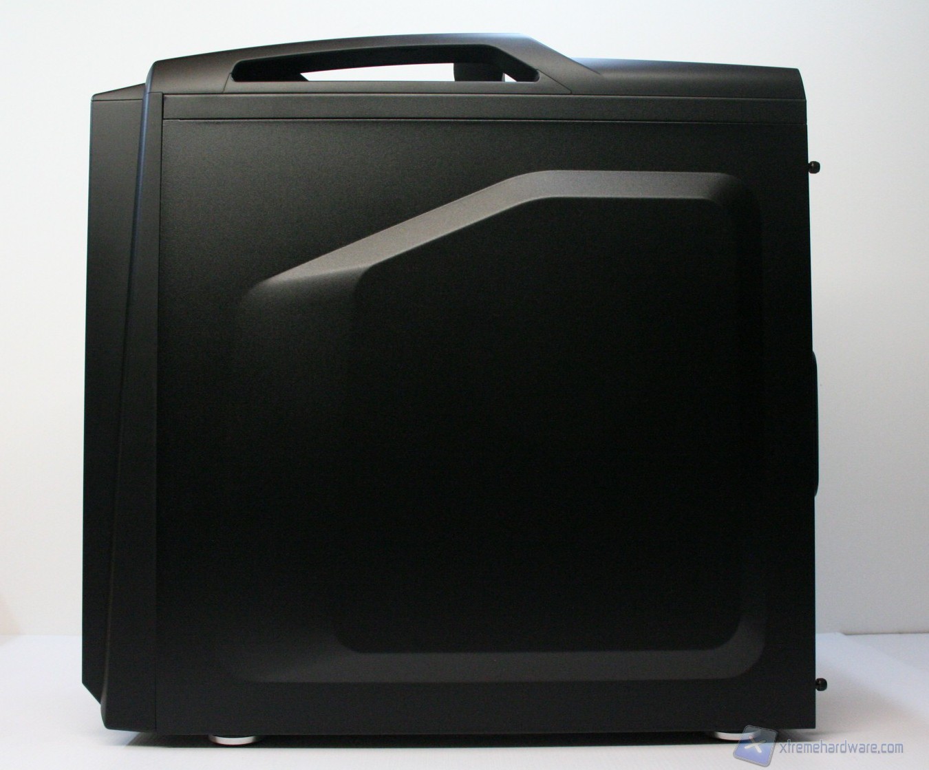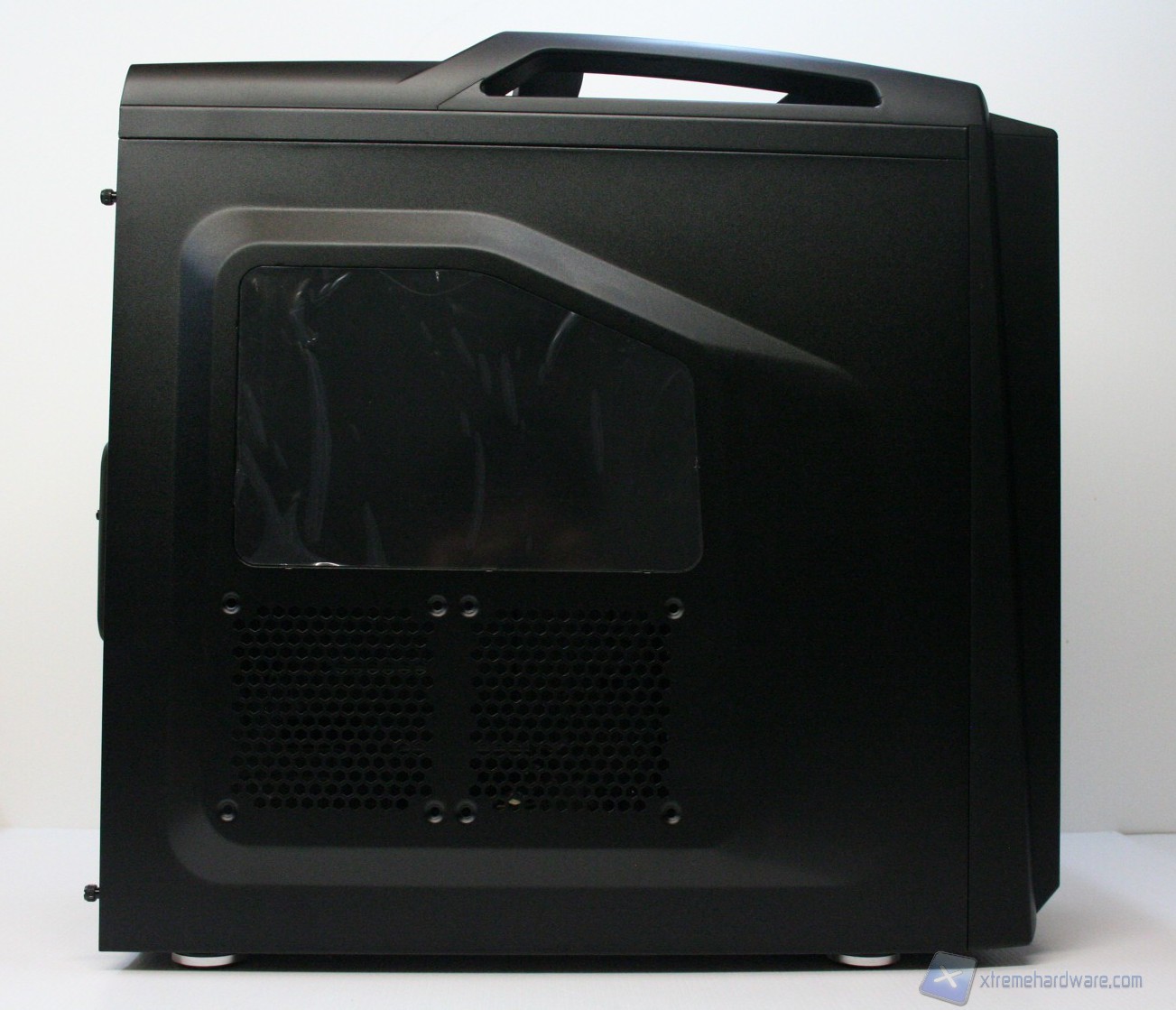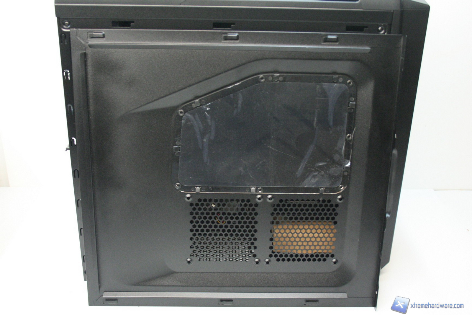 Il cabinet presenta un sistema di gestione delle paratie laterali classico, ma scorrevole e privo di intoppi, quindi di buon livello. Le paratie sono interamente in acciaio e quella di destra presenta due fori di ventilazione, per l’installazione di due ventole da 120mm che permettono di migliorare sensibilmente la dissipazione termica delle VGA.
