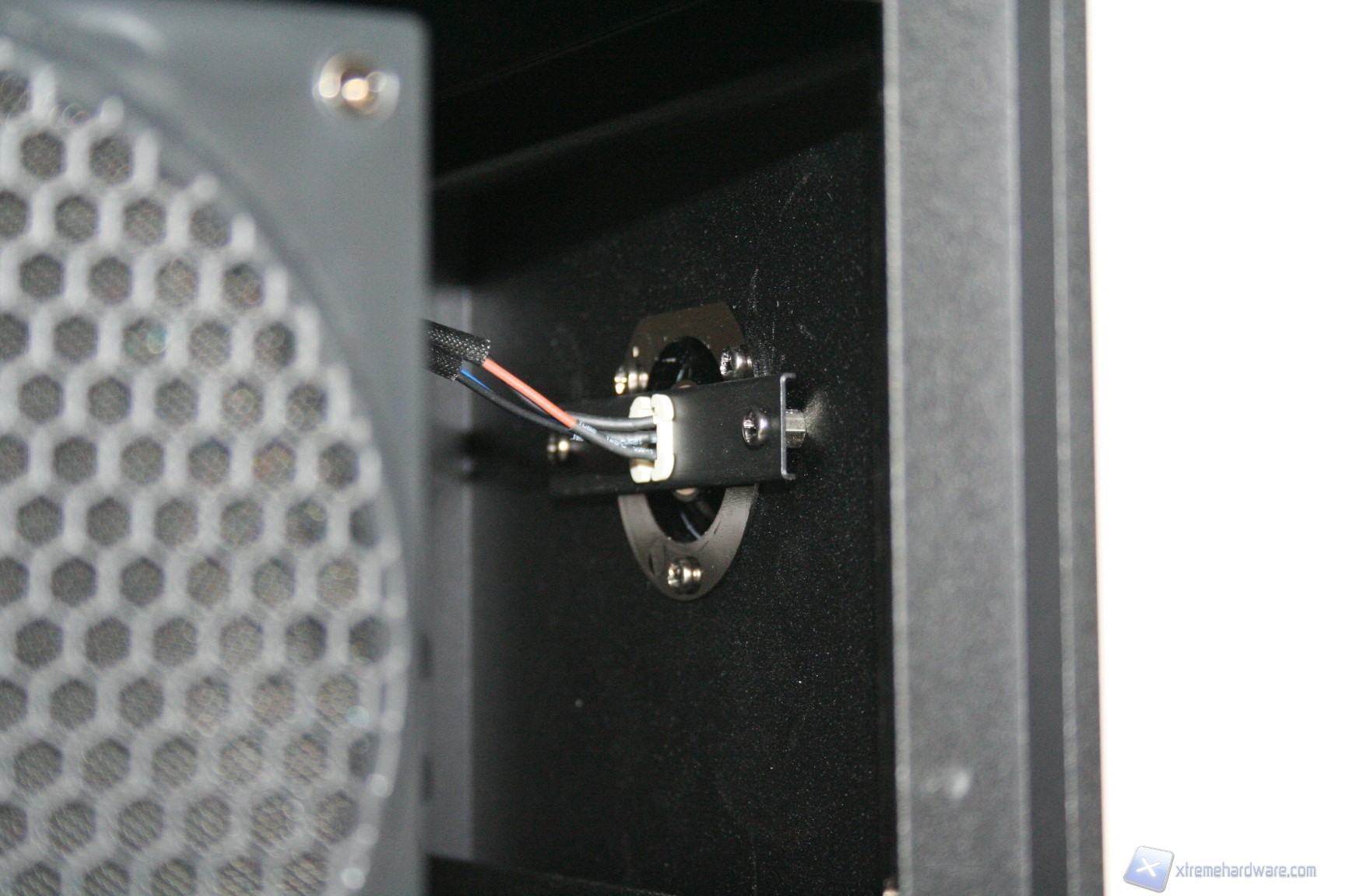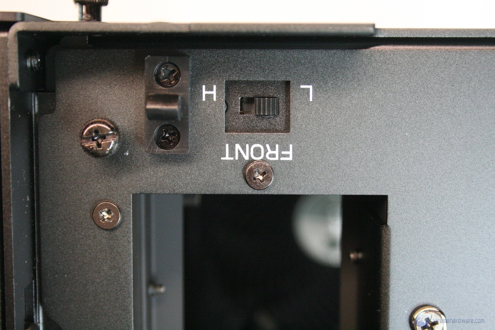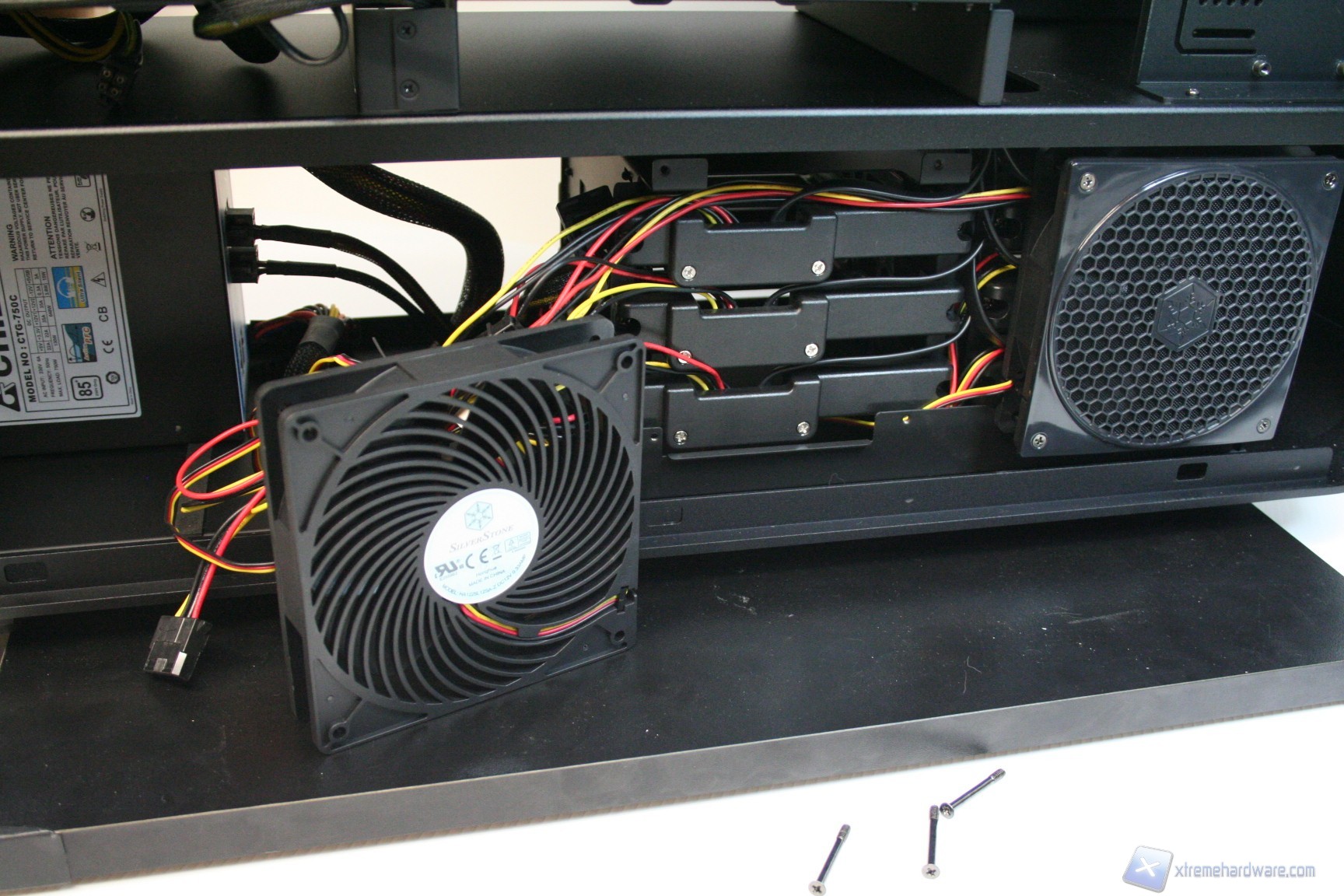 Il TJ11 è equipaggiato con due ventole da 180mm della tipologia Air Penetrator quindi abbiamo il massimo possibile nella gestione termica e dei flussi d’aria del cabinet. Eccellenti prestazioni e possibilità di una regolazione manuale della velocità, tramite due comodi switch nella parte superiore. Oltre alle ventole AP181 è presente anche una terza ventola superiore, in estrazione, da 120mm, proprietaria SilverStone. La rumorosità dei due modelli è contenuta al minimo dei giri, ma al massimo si fanno sentire, anche se in tal caso saremmo di fronte a performance termiche davvero impressionanti. Nella parte laterale, frontale e posteriore non è necessario montare ventole addizionali perché verrebbe disturbato il flusso laminare del cabinet. Sono infine presenti altre due ventole AP121, dedicate al raffreddamento dei dischi rigidi.