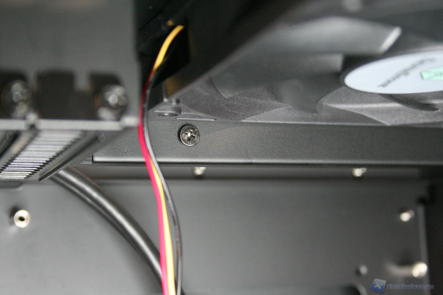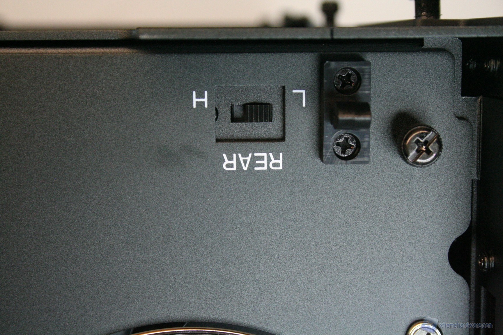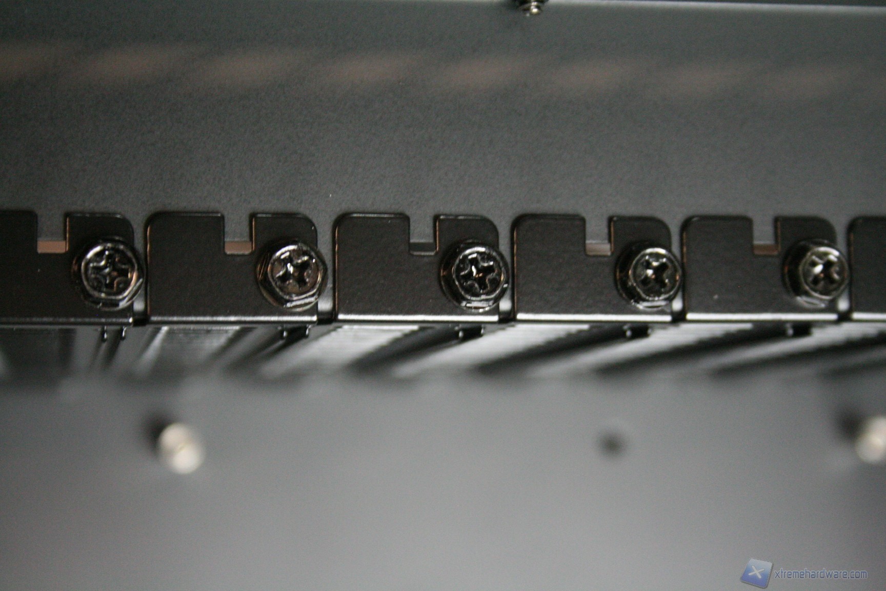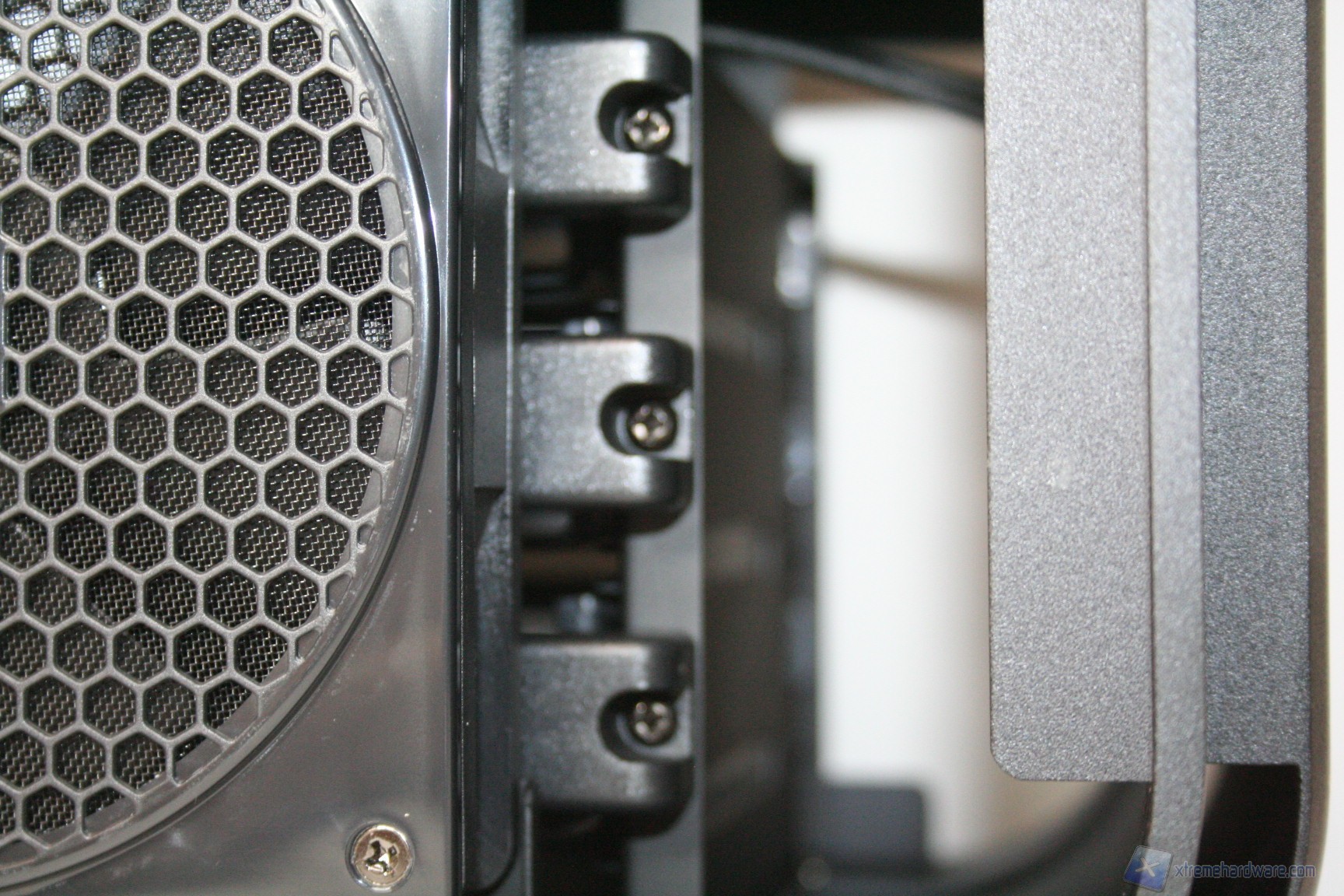 Nella parte superiore non è possibile l’installazione di radiatori sullo stile Corsair H100 in quanto c’è spazio a sufficienza solo per una singola ventola da 120mm; al contrario quindi possono essere montati modelli del tipo Antec Kuhler 920. E’ presente uno spessore particolarmente elevato, che permetterà l’installazione di modelli a liquido particolarmente spessi ed ingombranti, anche a doppia ventola. Alternativamente è possibile integrare nella parte inferiore un sistema a liquido, e quindi un radiatore triventola, da posizionare al posto delle due AP181 oppure sopra di esse. Come abbiamo già detto precedentemente, è presente la moderna apertura posteriore, per il cambio del dissipatore e del backplate, di dimensioni notevoli e ben posizionata. Facciamo presente che l’intero plate della scheda madre è removibile, una caratteristica propria di cabinet enthusiast e soluzioni server. La rimozione si effettua dall’alto ma purtroppo non ci sono maniglie quindi la procedura è consigliabile orizzontalmente, dopo aver posizionato il cabinet di lato e dopo aver staccato tutti i connettori di alimentazione e delle periferiche secondarie.