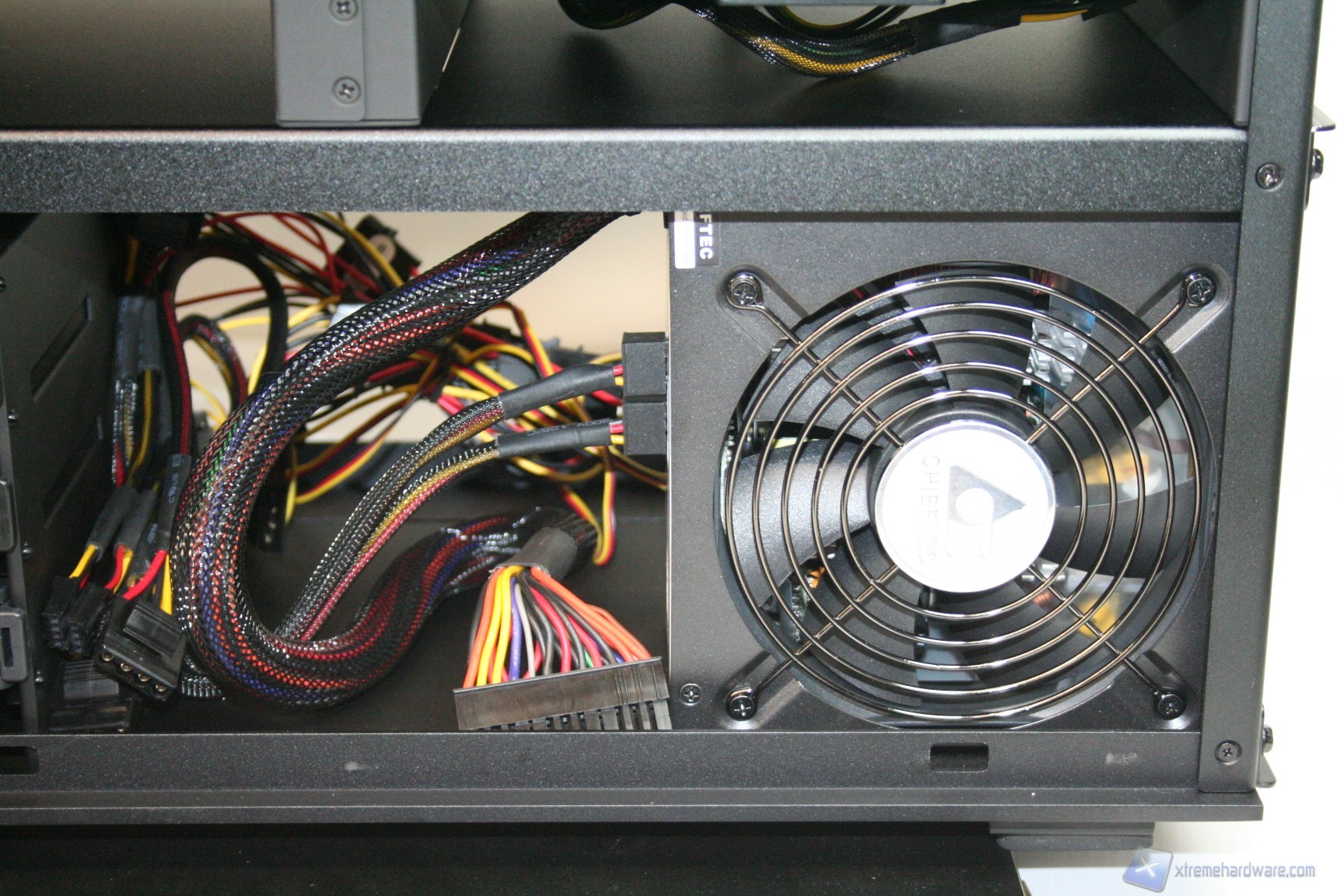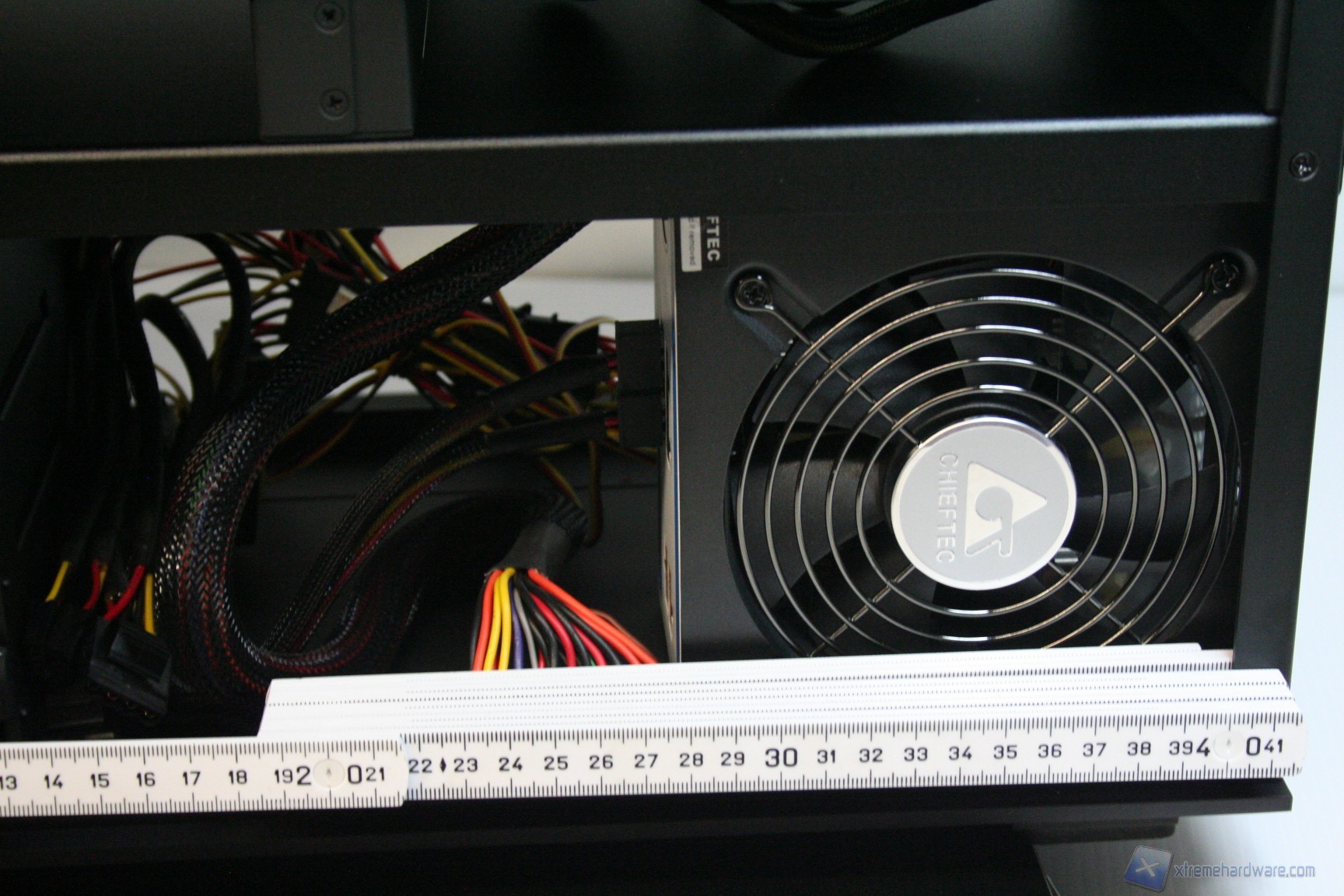 Il posizionamento dell’alimentatore è molto particolare perché oltre alla possibilità di montarne due, è posizionato ruotato di 90 gradi nella parte bassa, ed è isolato termicamente dal resto. Non ci sono limiti in grandezza quindi si possono installare modelli lunghissimi, e modulari.
