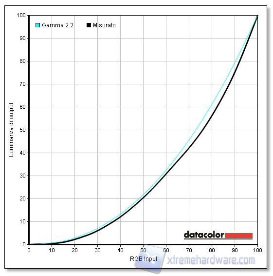 Il valore di gamma a default calcolato, è di 2,2, mentre la risposta della temperatura, rimane leggermente bassa.