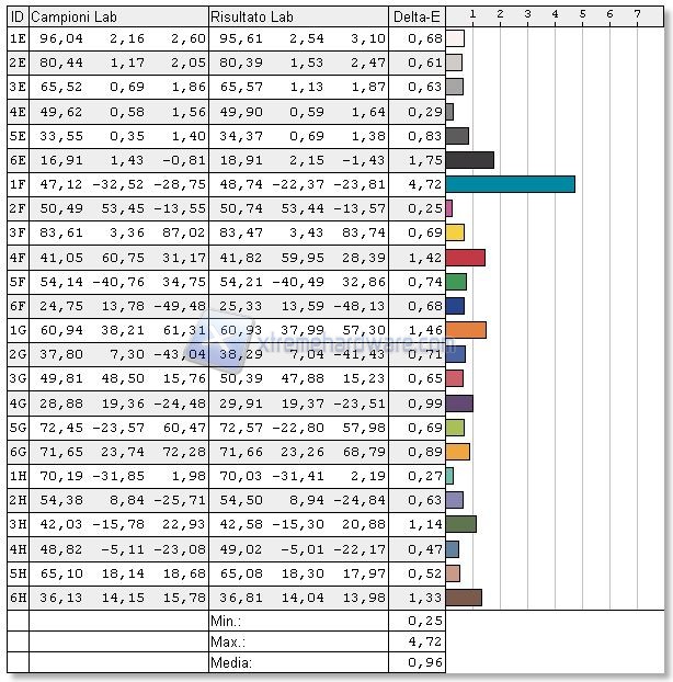 La fedeltà cromatica nelle condizioni out-of-box risulta davvero molto buona, con un Delta-E medio di 0,96.