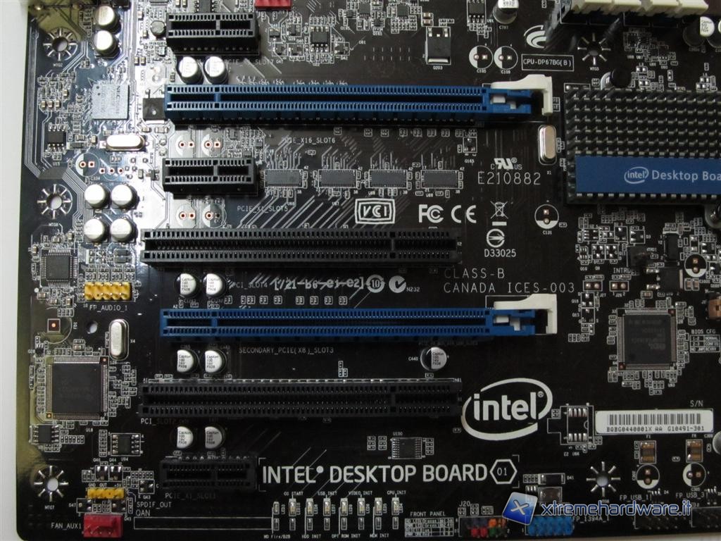 La scheda madre che Intel ci ha fornito per testare le nuove CPU appena rilasciate è la DP67BG denominata “Burrage”, accompagnata da un dissipatore Intel (opzionale) XTS100H, il quale è risultato essere molto più performante dei soliti dissipatori ‘stock’ compresi nel package retail delle CPU. osserviamo Oltre ad una struttura a torre dotata di heatpipe, l’XTS100H mette a disposizione dell’utente una interessante funzionalità per cambiare regime di rotazione della ventola tramite switch. Naturalmente è possibile gestire il regime di rotazione della ventola del dissipatore anche tramite BIOS, semplicemente scegliendo la Temperatura rilevata in cui la ventola debba aumentare il proprio regime, grazie al sistema di gestione PWM.
