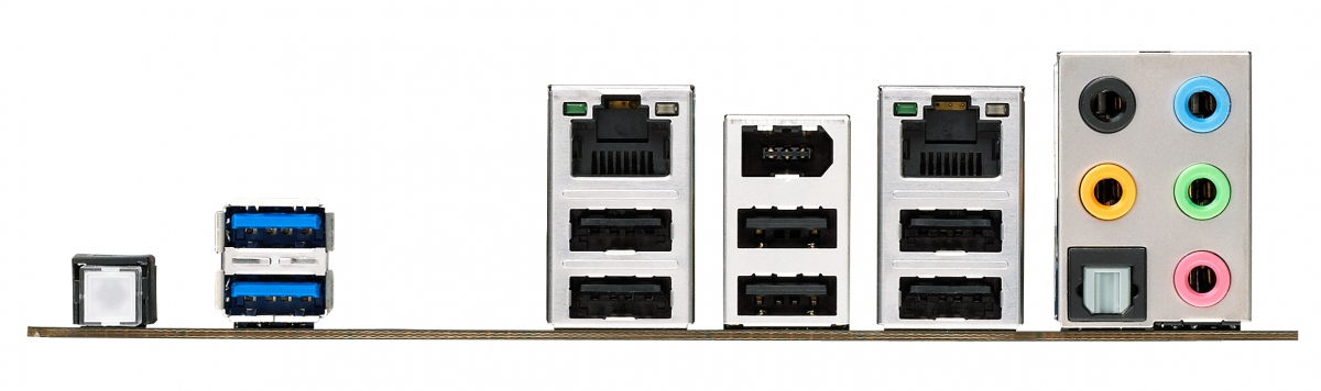 Passando alle connessioni posteriori notiamo da sinistra, il pulsante Back to BIOS, 2 USB 3.0, 6 USB 2.0, 2 Gigabit LAN, Firewire 1394a ed infine le consuete connessioni audio.