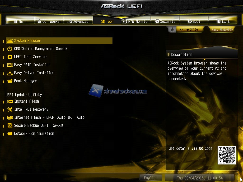 Passiamo ora a ‘’Tool’’ una ‘’collezione’’ di funzioni utili a segnalare errori ad ASRock direttamente dal BIOS previa connessione ad Internet, o ancora aggiornare il BIOS da Internet, scaricare i driver relativi al sistema operativo che abbiamo installato o ancora creare in modo sicuro e veloce un RAID. Alcune voci come la segnalazione di errori e l’aggiornamento del BIOS direttamente dal BIOS stesso sono esclusive di ASRock.