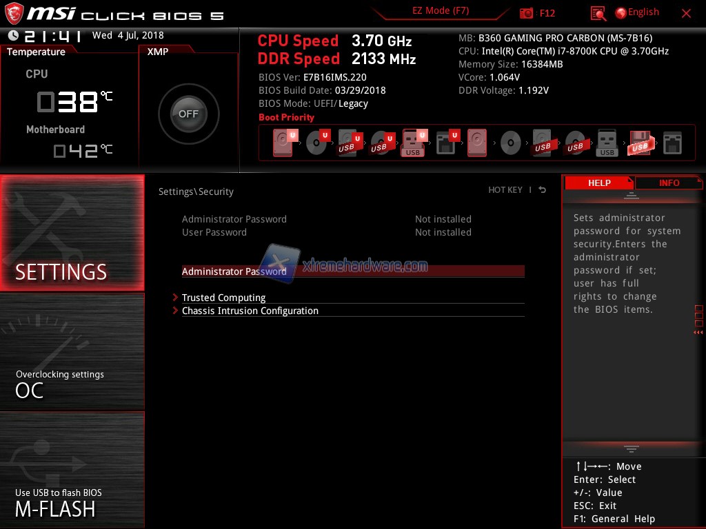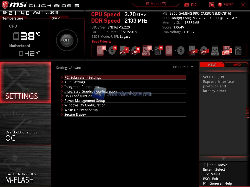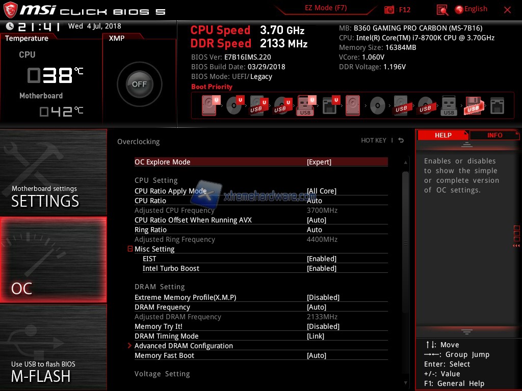 MSI B360 Gaming Pro Carbon - Gaming in economia? - BIOS