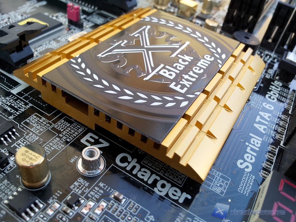 Il sistema di alimentazione presenta due grandi dissipatori uniti da una heatpipes che raffreddano tutta la zona, un'altro dissipatore con adesivo nero Black Extreme, protetto da una pellicola adesiva trasparente, è adibito al raffreddamento del chipset. Tutti i dissipatori sono removibili tramite l'ausilio di un cacciavite. Lo scambio termico è garantito da pad termici per quelli della zona d'alimentazione e da un velo di pasta termica per quello adibito al chipset, quest'ultimo in realtà è molto sovradimmensionato come si può notare smontandolo, la zona dissipata infatti è molto limitata, come pure il TDP del chipset Z77. Svolge tuttavia egregiamente la sua funzione estetica.
