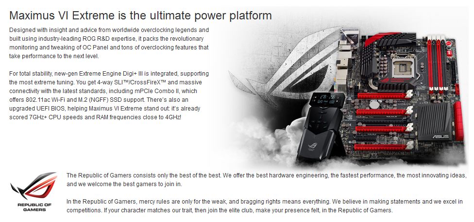 La ASUS MAXIMUS VI EXTREME appartiene alla fascia ROG, che non necessita di molte presentazioni. La gamma di modelli Maximus con chipset Z87 quest’anno è molto ampia, ben 3 modelli ATX, 1 Micro-ATX e 1 Mini-ITX. Abbiamo già analizzato la prima new entry, la Hero, e analizzeremo presto anche la seconda novità nella fascia ROG, la Mini-ITX tutto pepe Maximus VI Impact. La serie ROG presenza del recente chipset PCH Z87 noto anche con il termine Lynx Point. I piani di Intel con la serie 8 sono di coprire tutte le fasce, dai Mainstream ed Office per andare al settore Business e Performance.