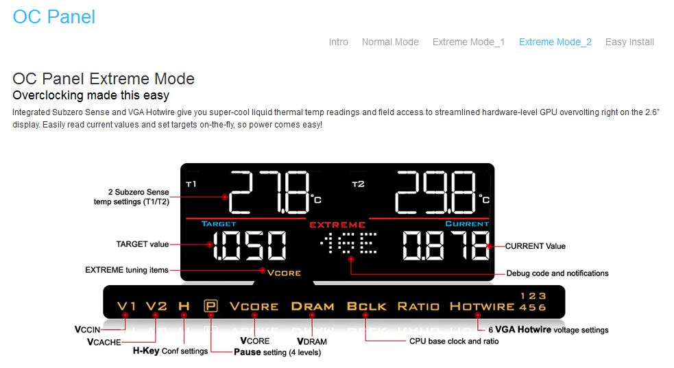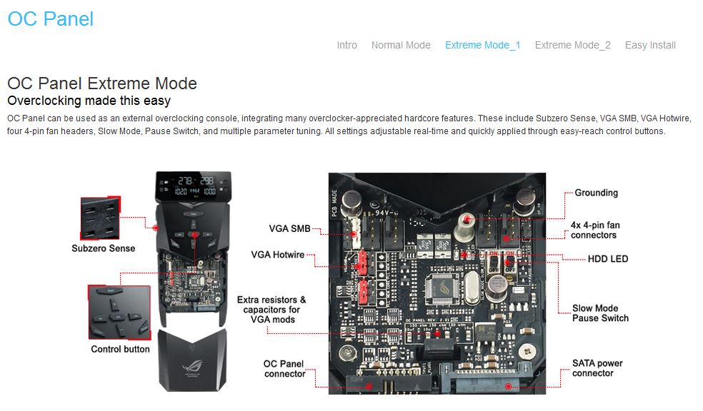 Queste immagini non rendono giustizia all’OC Panel, peculiarità che differenzia la Maximus VI Extreme dagli altri modelli. Nella recensione della Hero avevamo infatti visto che la sezione di alimentazione era identica a quella della versione Extreme. D’altra parte, si sa, la potenza è nulla senza controllo ed in questo ASUS ne ha tratto l’ispirazione per realizzare un innovativo telecomando per soddisfare il gamer più incallito e l’overclockers più esperto coniugando la praticità al concetto di eleganza.