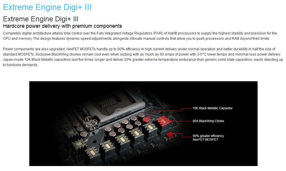 Per sprigionare tutta la potenza possibile dai propri componenti è necessaria un’erogazione corretta e precisa della corrente senza per questo correre i rischio di provocare danni dovuti a picchi di sovratensione oppure a temperature estreme a cui vengono sottoposti. Per questo la Maximus VI Extreme si avvale del sistema DIGI+ di 3a Generazione per operare su soglie di efficienza del 90% e con una resistenza superiore del 20%.