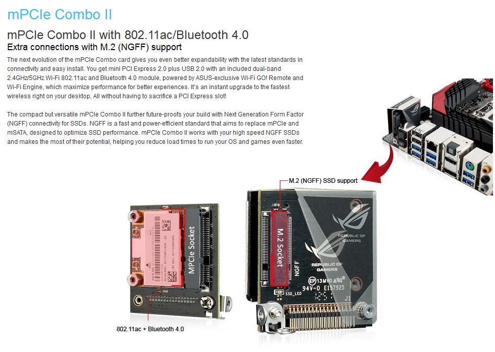La schedina mPCIe Combo II di 2° generazione è un’ulteriore prova di anticipazione degli standard NGFF in fatto di efficienza lato connettività SSD che permette di ridurre i tempi di accesso al disco e di caricamento. Gli SSD NGFF promettono infatti di superare le attuali prestazioni degli SSD Sata 6Gb/s.