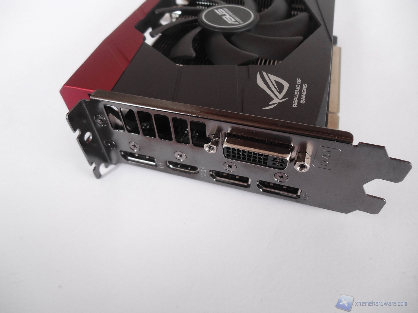 Per quanto riguarda la connettività, ASUS mette a disposizione 1 DVI-I, 3 DisplayPort 1.2 e 1 HDMI 2.0 (con supporto ai contenuti 3D), permettendo di utilizzare configurazioni a 4 monitor. Tramite le connessioni DisplayPort sarà possibile visualizzare contenuti con risoluzioni fino a 4K, oppure contenuti 1080p 3D (fino a 60 Hz per occhio), tipici dei formati Blu-Ray. La massima risoluzione supportata dalla DVI-I è invece di 2560x1600.