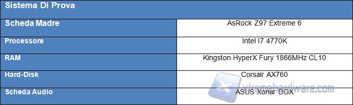 Abbiamo testato la scheda oggetto della review odierna con il seguente sistema di prova per quanto riguarda i benchmark e i giochi: