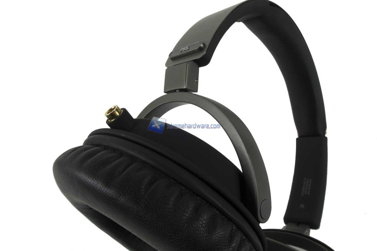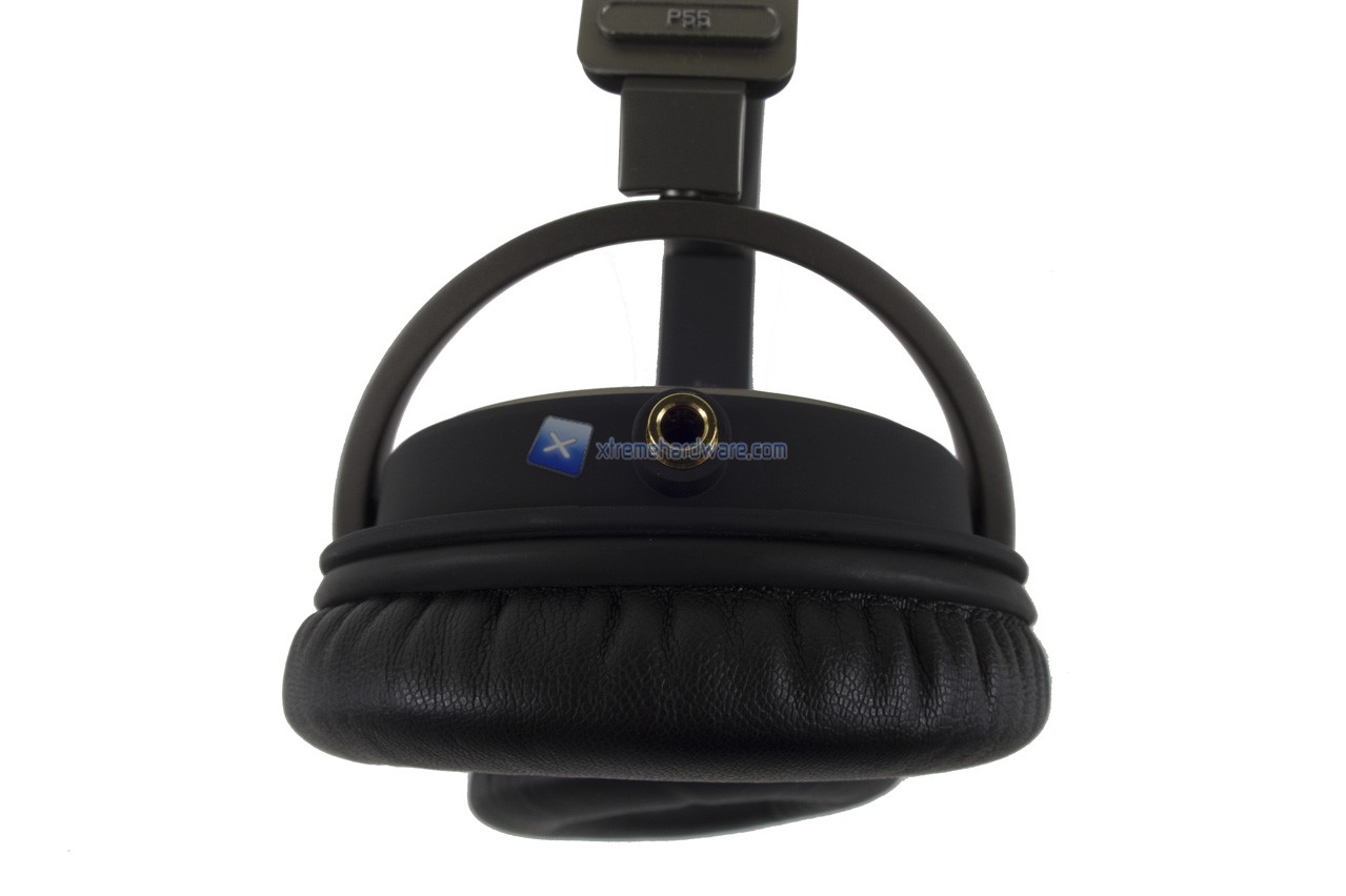 Dettaglio ingresso jack 3,5 mm placcato oro del padiglione sinistro oltre che della possibilità di rotazione/tilt dei singoli padiglioni.