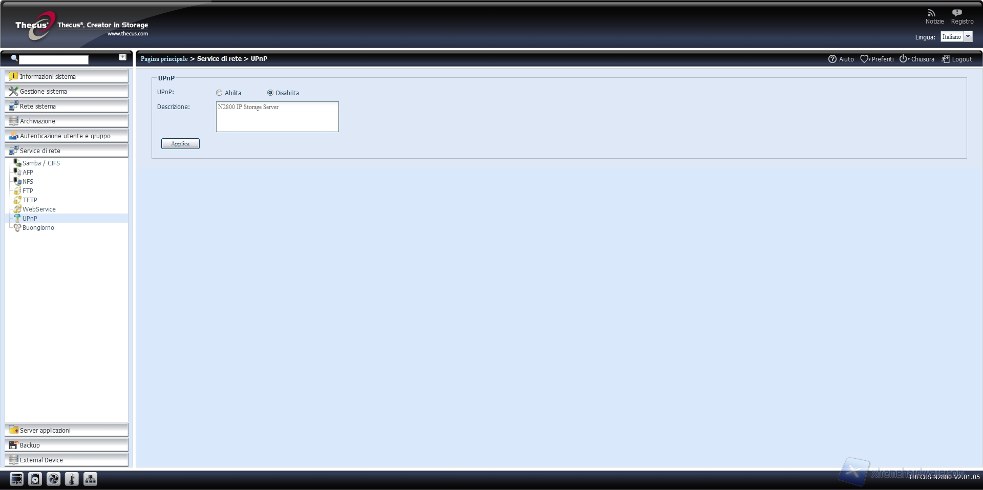 Altro servizio che il Thecus N2800 mette a disposizione è il WebService, che permette la navigazione all’interno del NAS tramite protocollo http o il più sicuro HTTPS.