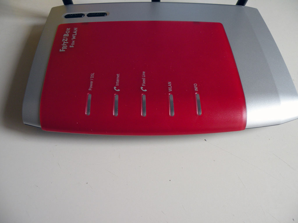 Sul retro troviamo le tre antenne che caratterizzano la connessione Wi-Fi con standard “N”, una porta di colore grigio chiaro in cui andremo ad inserire il cavo ad Y che abbiamo trovato nella confezione che collegherà il nostro Fritz! alla linea telefonica. Subito a fianco ci sono due porte che utilizzeremo per collegare due telefoni tradizionali (che siano fissi o cordless), quindi una porta per collegare un centralino ISDN e una porta USB 2.0 che ci permetterà di condividere HardDisk USB o Stampanti con la rete locale. Da precisare che a questa porta USB possiamo collegare anche un HUB USB, che ci permetterà di condividere simultaneamente più dispositivi. Ecco quindi 4 porte di colore Giallo che consentono il collegamento di 4 computer via LAN ed infine il connettore per l’alimentazione.