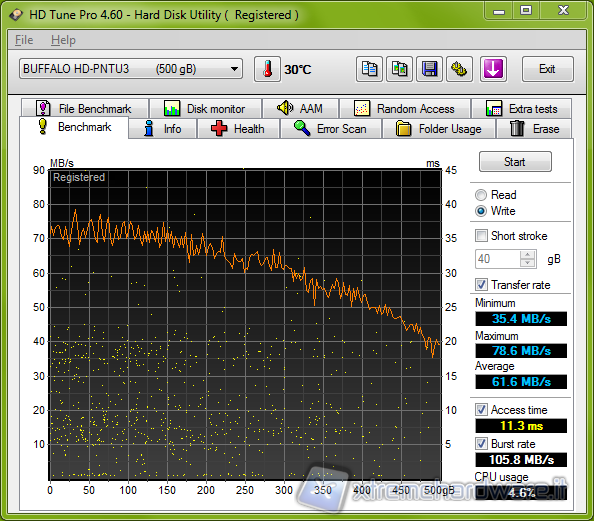 In questo test non abbiamo evidenziato prestazioni eccellenti. La Buffalo MiniStation Plus si piazza leggermente al di sotto di altri prodotti che sfruttano la stessa connessione; i suoi limiti sono sicuramente dati dall'utilizzo di un hard disk da 5400RPM. Tuttavia il risultato è più che accettabile.
