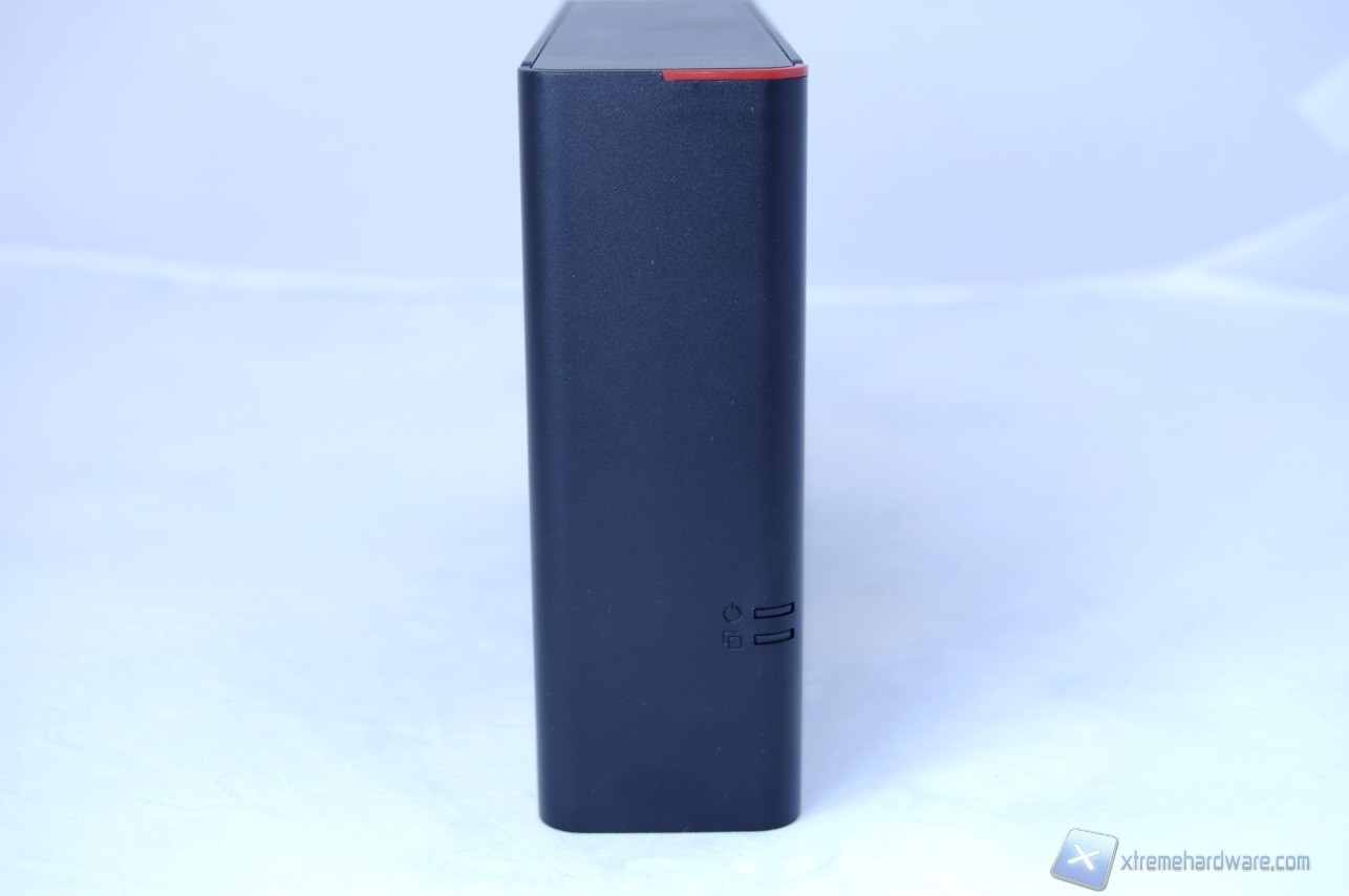 Sempre su questo lato del prodotto troviamo due LED atti ad indicare il funzionamento del sistema e del disco interno.