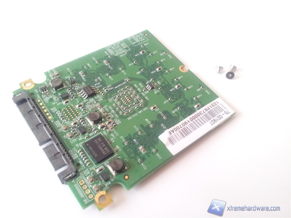 Centralmente è invece presente il controller Link_A_Media (LAMD) LM87800, coperto dal pad termico. La giovane azienda è stata fondata nel 2004 a Santa Clara in California, con l’obiettivo di ottimizzare la densità degli hard disk tradizionali grazie a sofisticati algoritmi di correzione degli errori. Forte di questo know-how LAMD si è ora lanciata nel promettente settore degli SSD, implementando anche in questo caso sistemi di correzione degli errori, al fine di garantire maggiore longevità ai drive equipaggiati con questo controller.