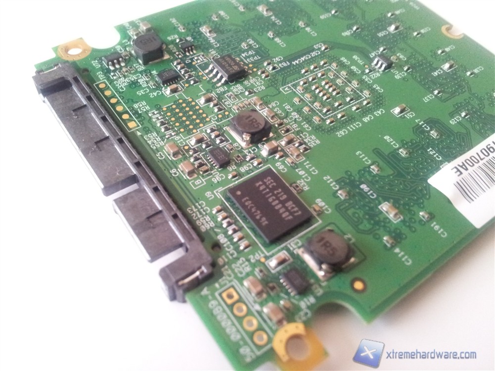 Sul retro del PCB sono facilmente identificabili gli 8 moduli di memoria NAND Flash da 32GB ciascuno per un totale quindi di 256GB, i moduli sono prodotti da Toshiba ma, a differenza di quelli utilizzati per il Performance PRO, quelli del Neutron GTX sono a 24nm (contro i 32 del performance) e sono in grado di operare a 166MB/s, il modello utilizzato è il TH58TEG8D2HBA8C. I due chip di memoria DRAM DDR3 sono prodotti da Samsung ed operano ad una frequenza di 800MHz, ogni modulo è di 128MB per un totale di 256MB di cache.