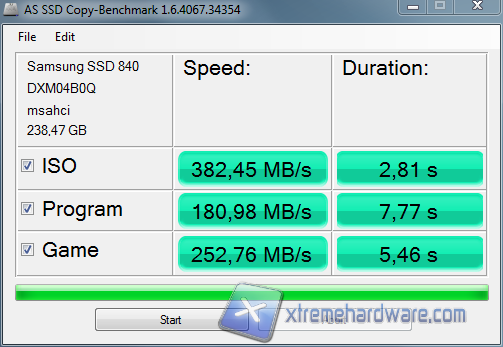 L'840 PRO stacca di quasi 200 punti il modello 840 nel benchmark AS SSD. Oltre alle caratteristiche già evidenziate, nel bemchmark di copia l'840 risulta sempre più veloce, in particolar modo nei file di tipo ISO, evidentemente influenzato dalla maggior velocità di scrittura sequenziale per il modello di punta.